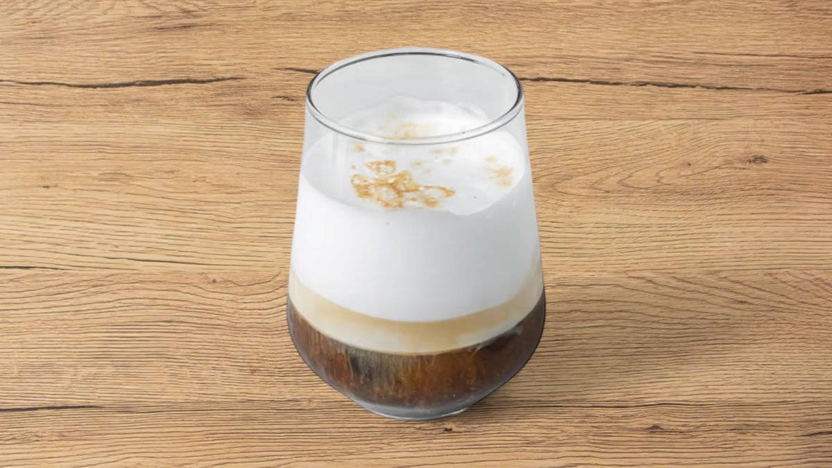 еспресо с подсладено кондензирано мляко и млечна пяна