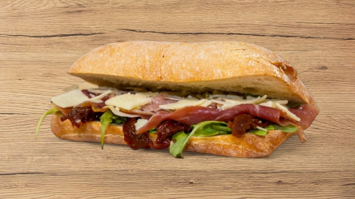 Прошуто, пармезан, рукола, сушени домати - Продуктите в сандвича не могат да бъдат заменени или извадени