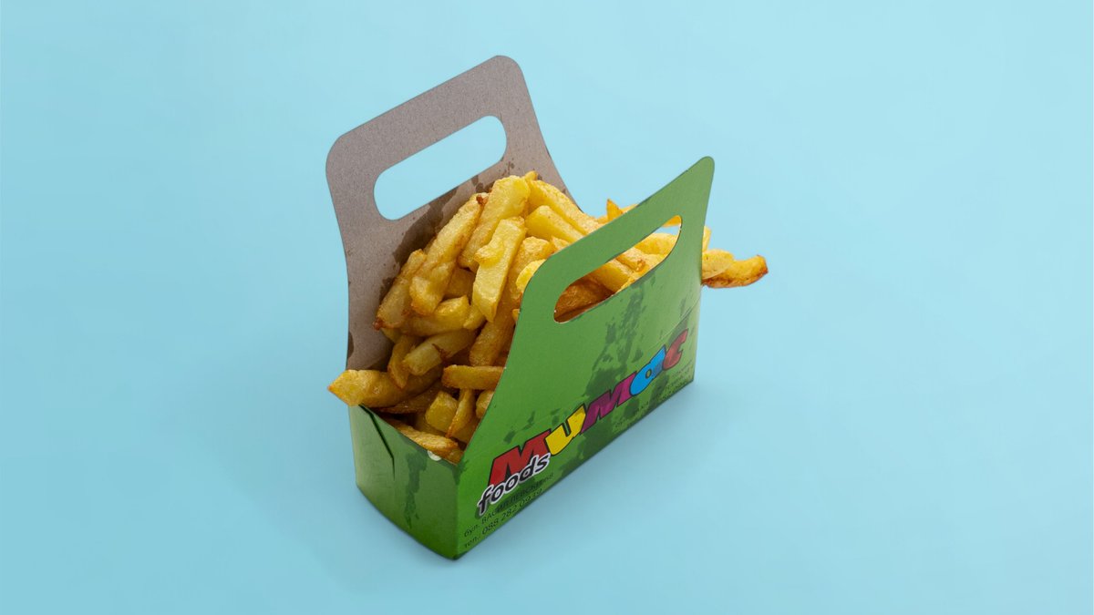 пилешко кюфте х2, картофи, кетчуп, майонеза, зеле, кисели краставички 300г