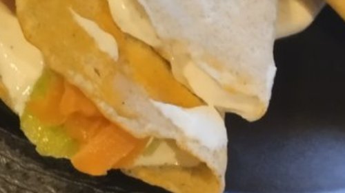 Нахутени катми с краставичка, мус от извара и пушена сьомга