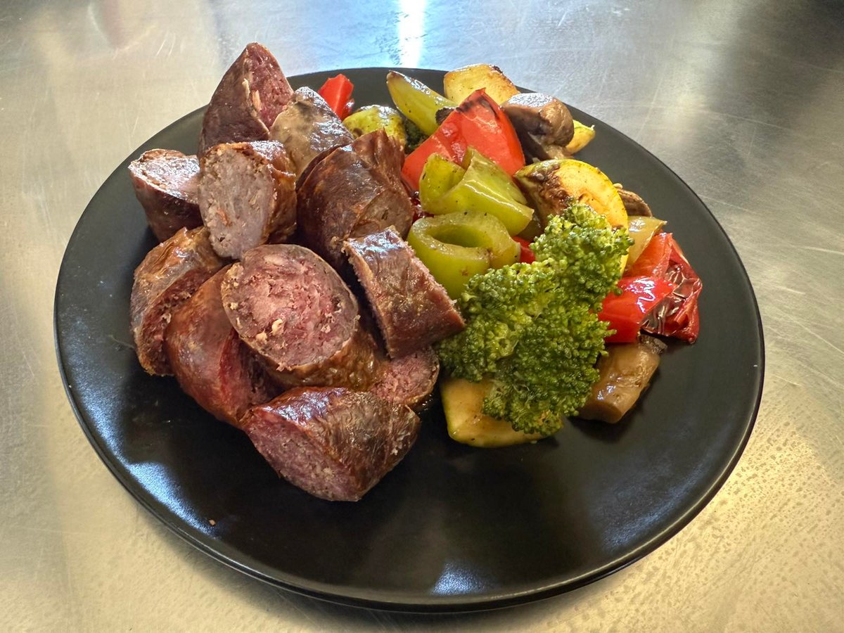 Телешки суджук със зеленчуци на плоча