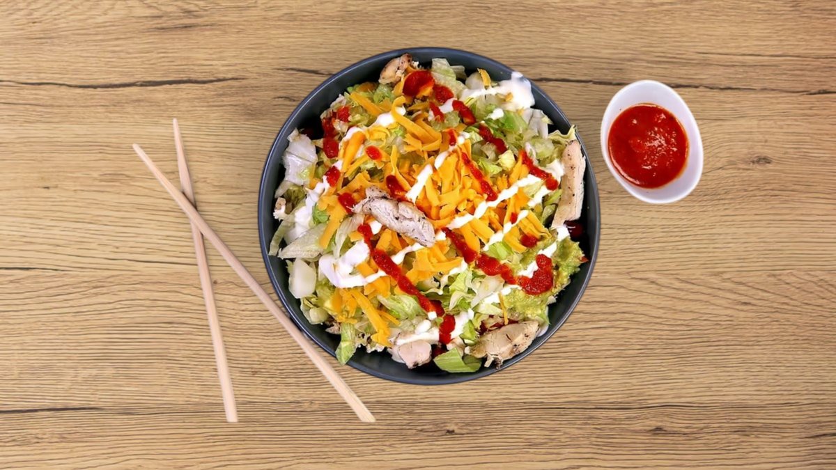 протеин по избор (Пиле, Телешко, Бекон или Хумус) Басмати ориз, гуакамоле, червен боб, салца, сметана, чедър, салата айсберг, Лют сос (по желание) 450г
