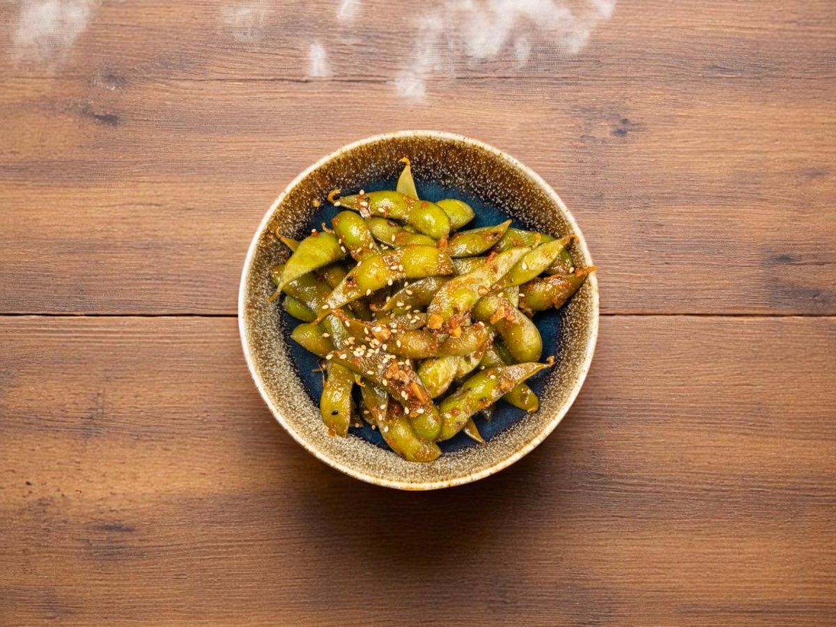 соеви зърна в шушулка гарнирани с пикантен Ninja сос