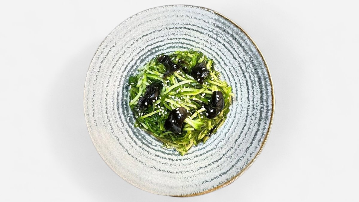 Уакаме, краставица, гъба аурикулариа, сусам, овкусена с умами винегрет с ясен азиатски привкус.