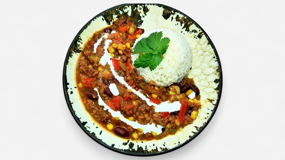 Тортила с вкусно чили кон карне и ароматен басмати ориз, допълнени с разтопен чедър и кремообразна заквасена сметана. Люто по избор. Плътна и засищаща класическа комбинация.