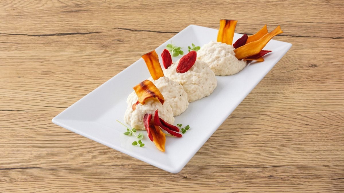 Лучен дип с чипс от зеленчуци, поднесен с"Падринка"