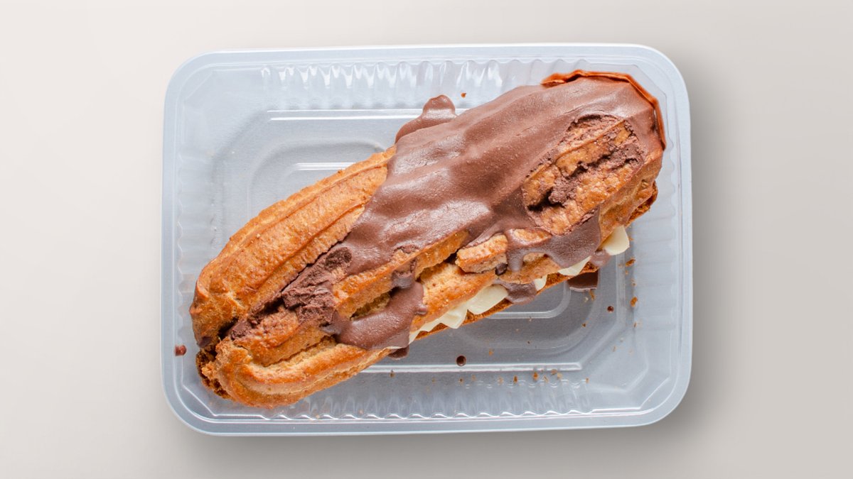 Пълнозърнест еклер с домашен протеинов шоколад и протеинов крем! Хранителна стойност за 100г - 146 калории!