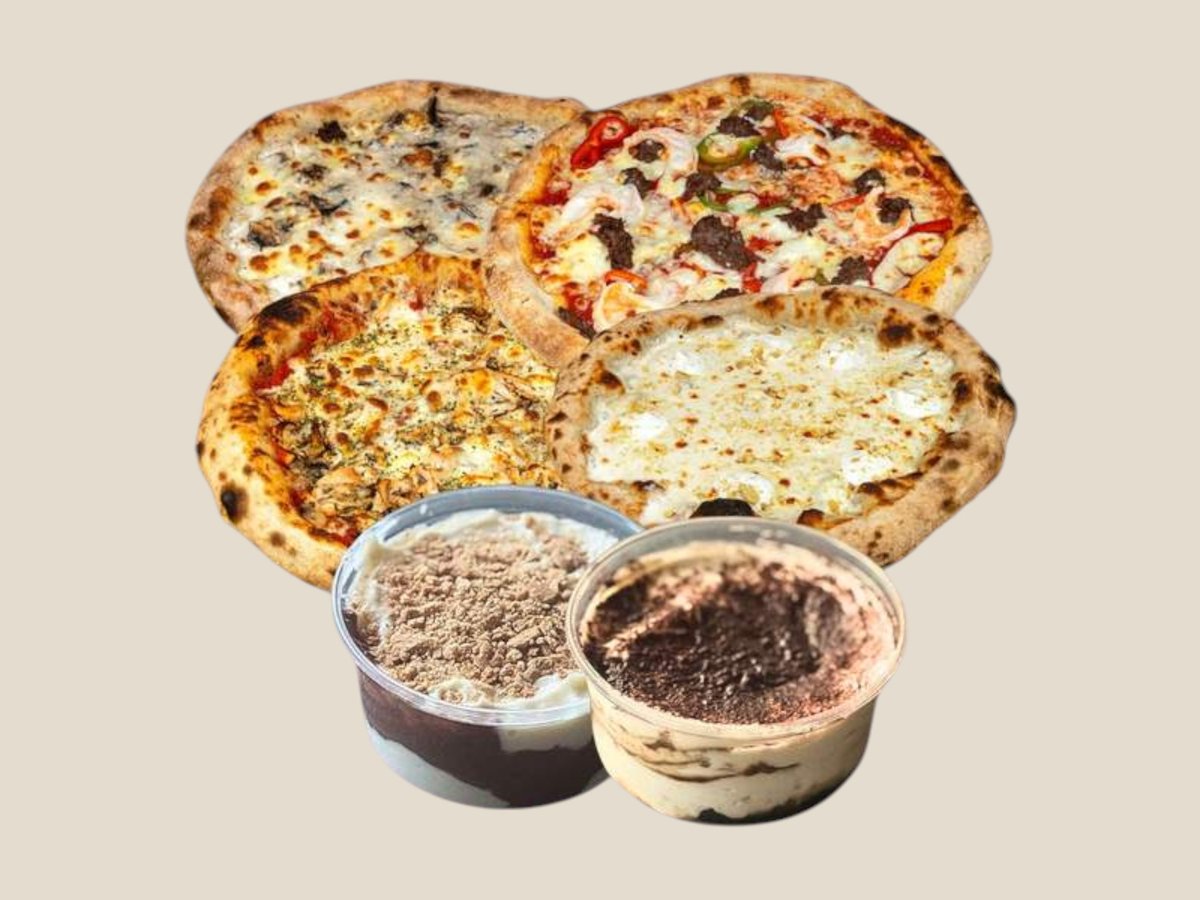(32см, 685кал, 40г протеин) като четири сирена.. ама ПРО! Крем от оризова сметана, специален домашен веган пармезан, котидж сирене, лайт моцарела, протеинов мус извара! Всички пици са приготвени със високо протеиново пълнозърнесто тесто, с двойна ферментация на над 50 часа