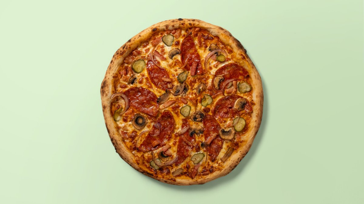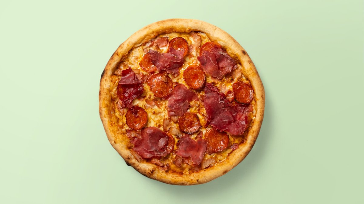 1бр дом.пюре,моцарела,шунка,бекон,телешко и пеперони