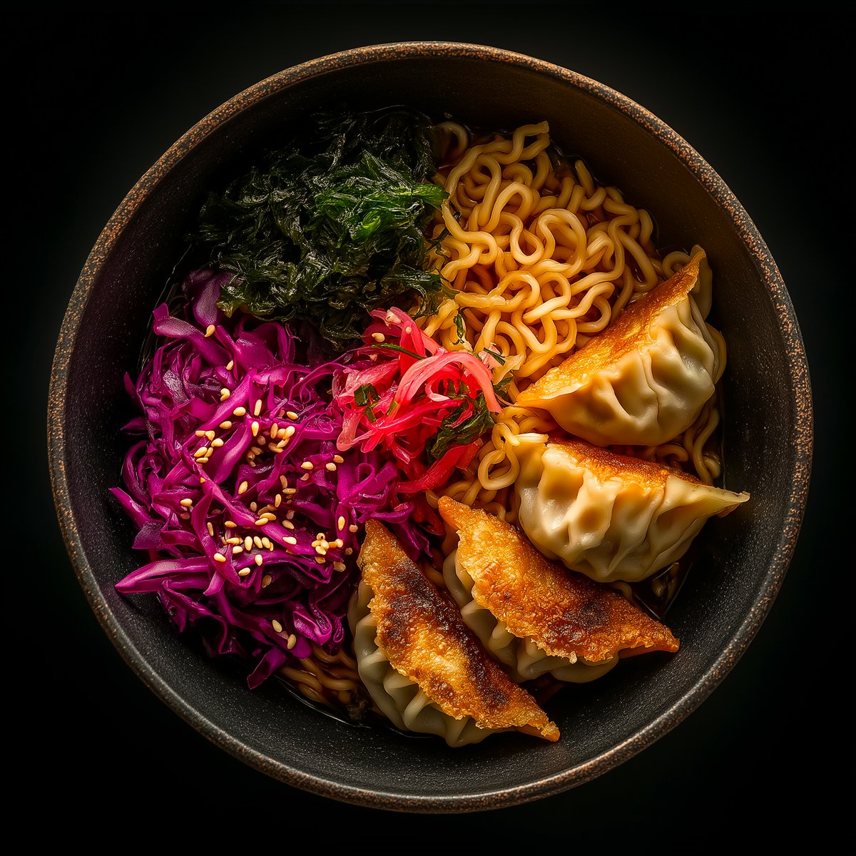 Crispy Gyoza RAMEN Bowl (No Broth) - Makani Shio Noodles