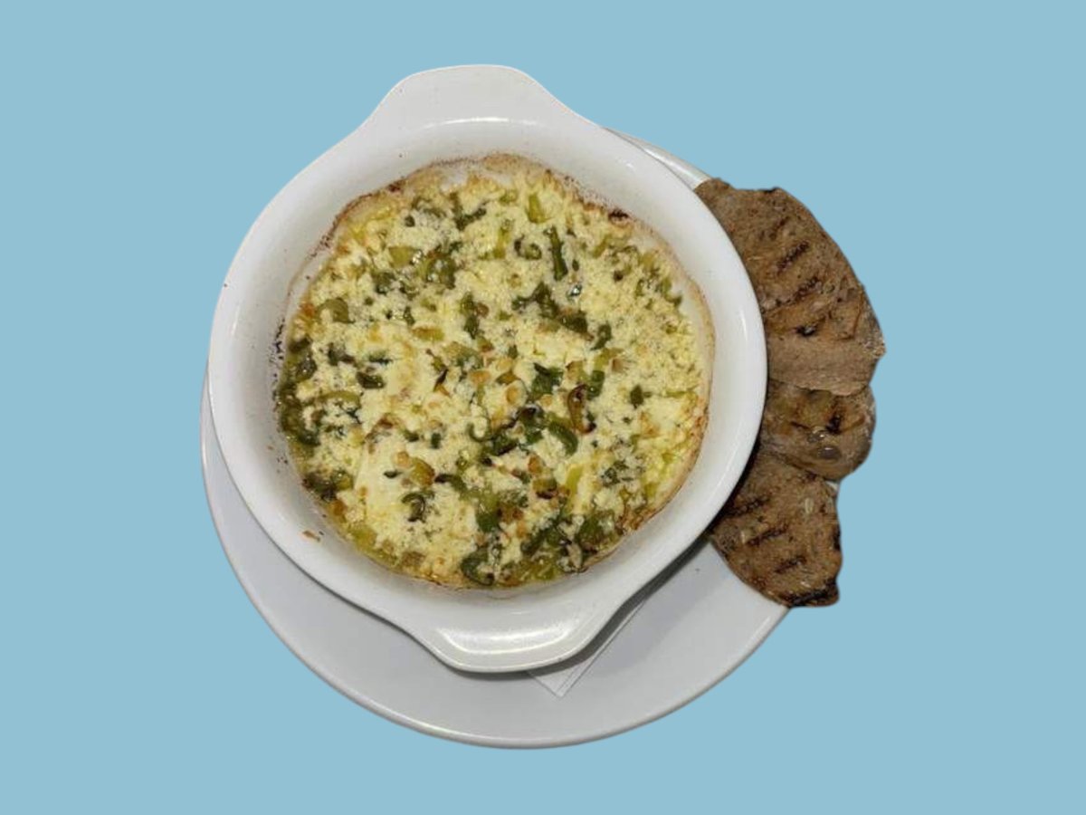 спанак, скариди, чесън, крема сирене, артишок, брускети, див лук, кампари, 180г