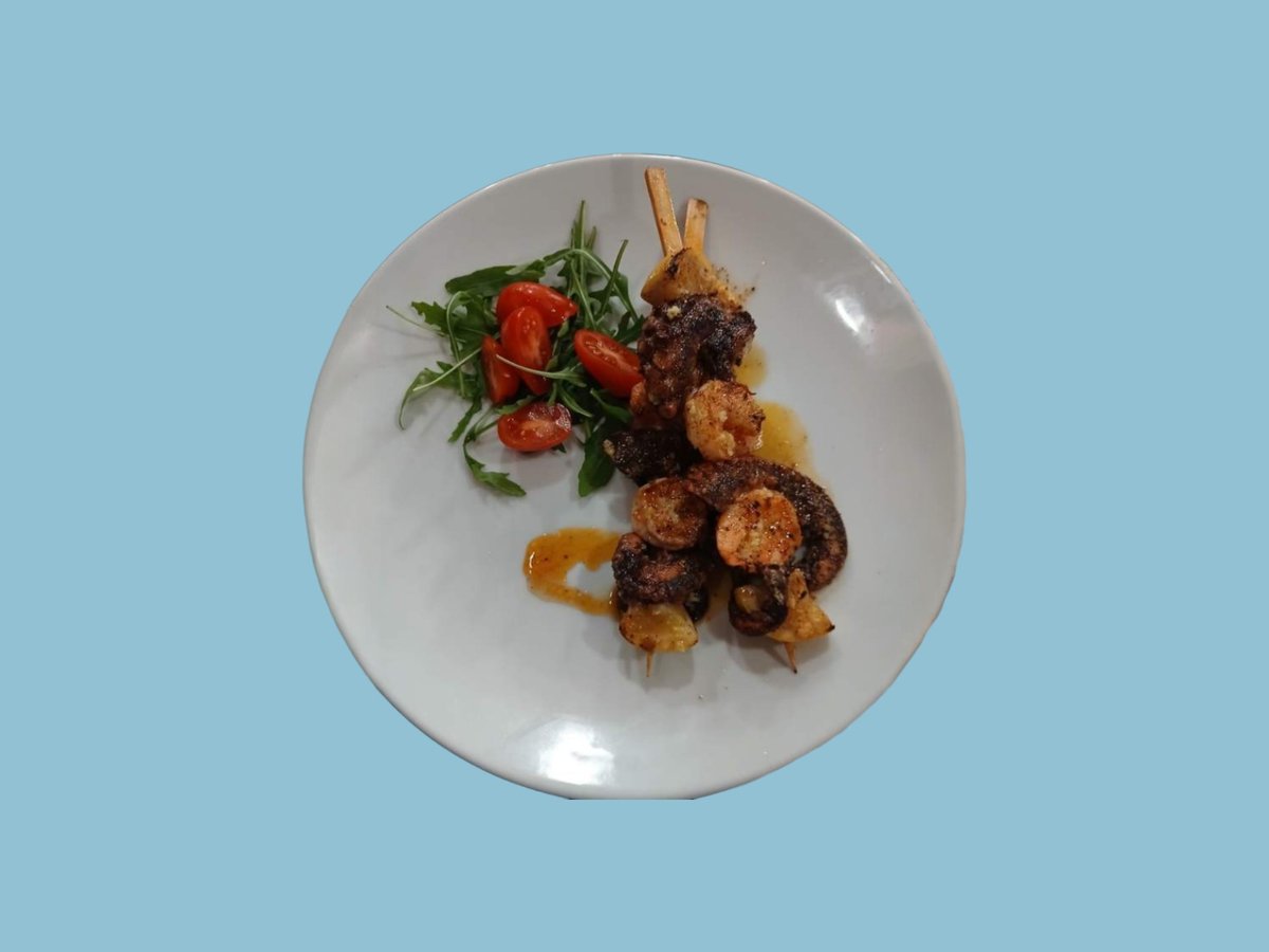 октопод, чесън, конфи от кампари и червен лук, каперси и маслини, 300г
