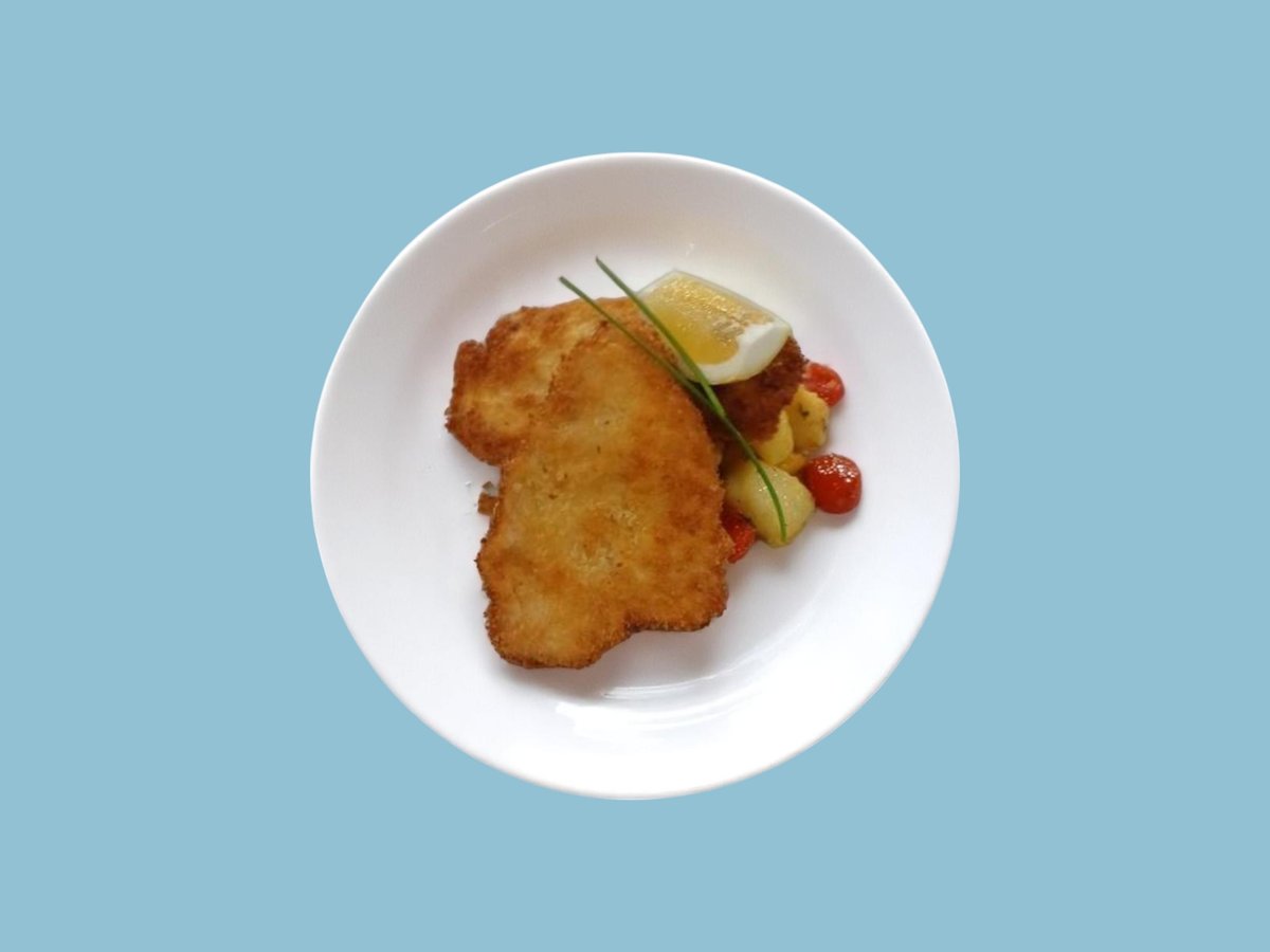 картофи, чесън, копър, яйце, Грана Падано, горчица, пилешко филе, магданоз, кампари, лимон, 350г