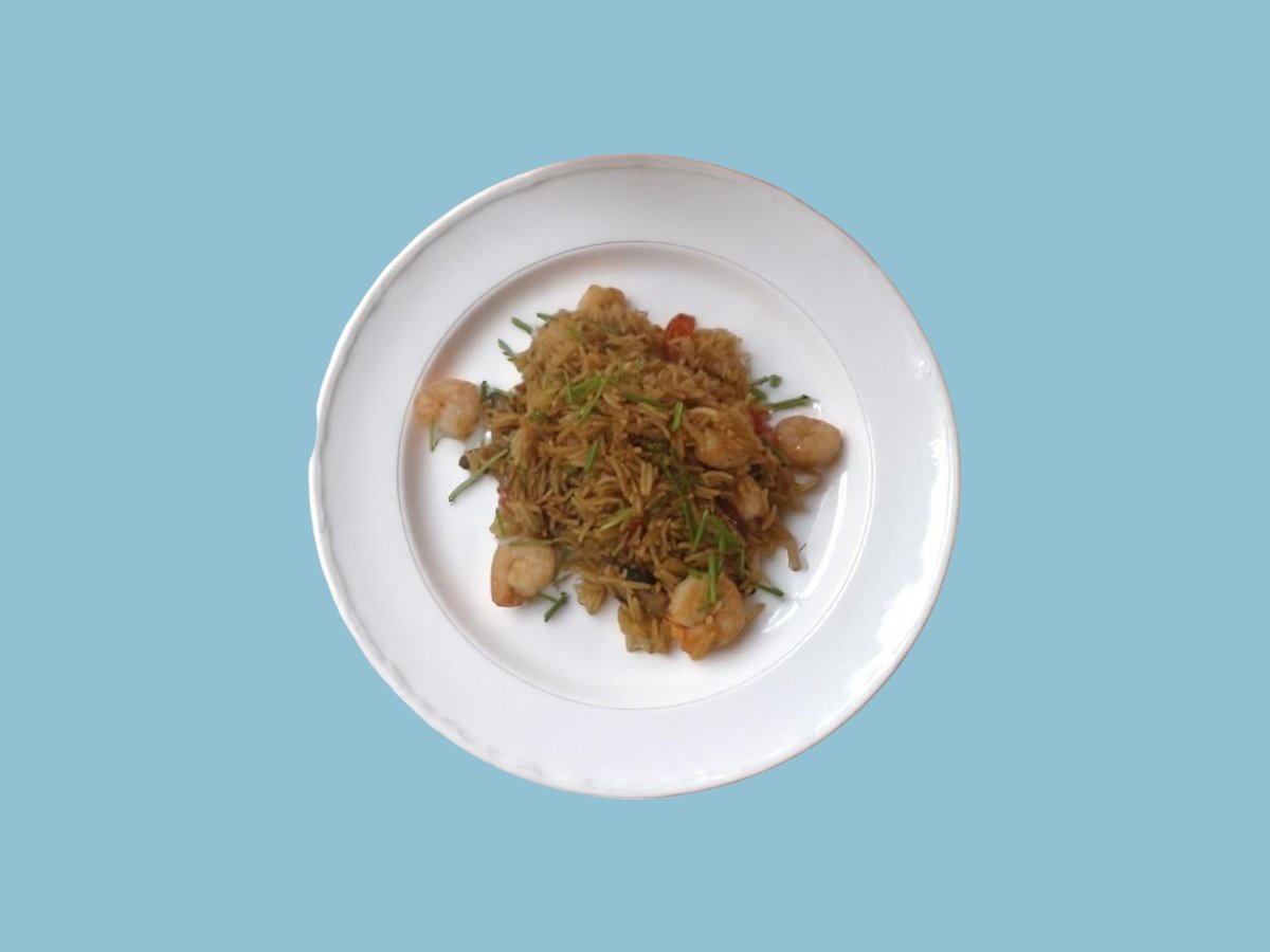 скариди, чесън, басмати, моркови, тиквичка, гъби, див лук, червена чушка, 350г