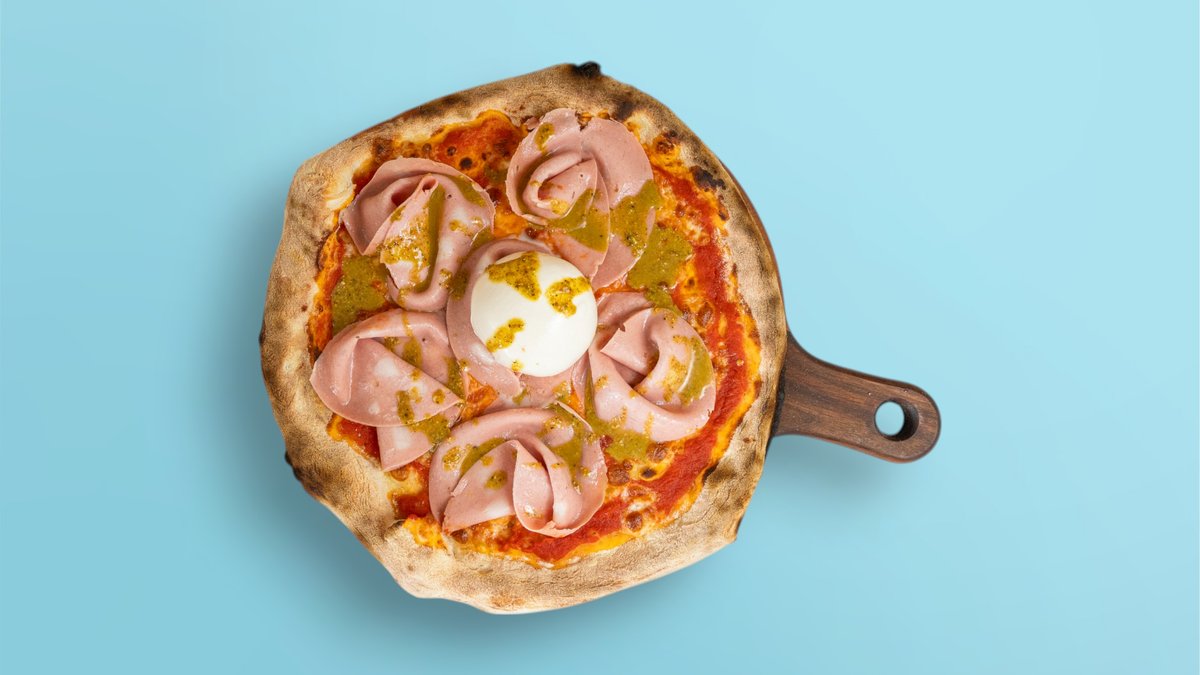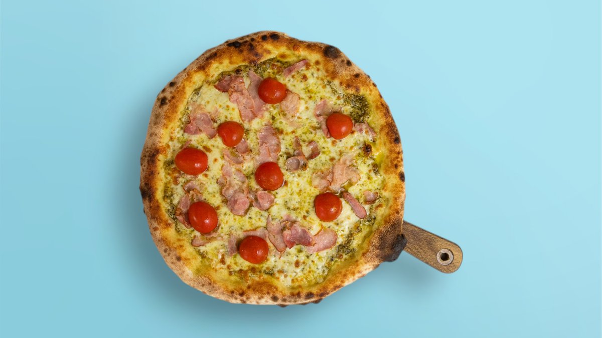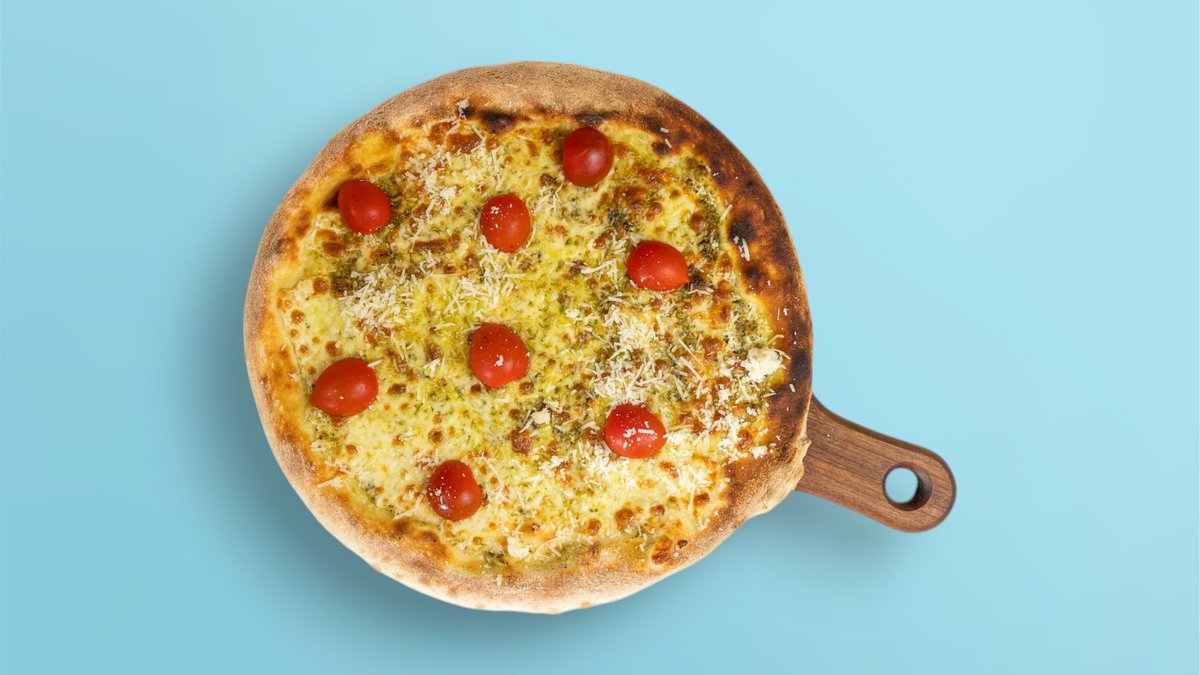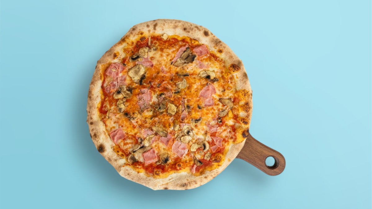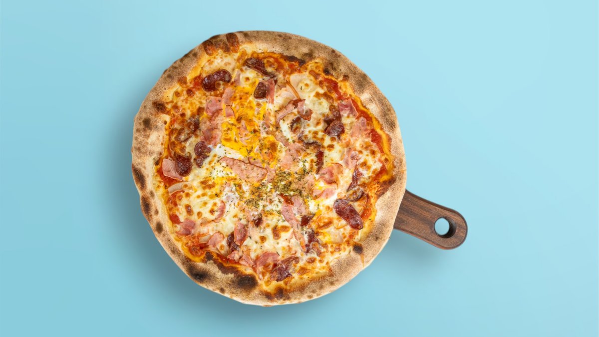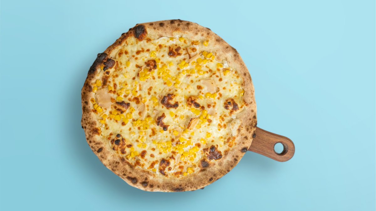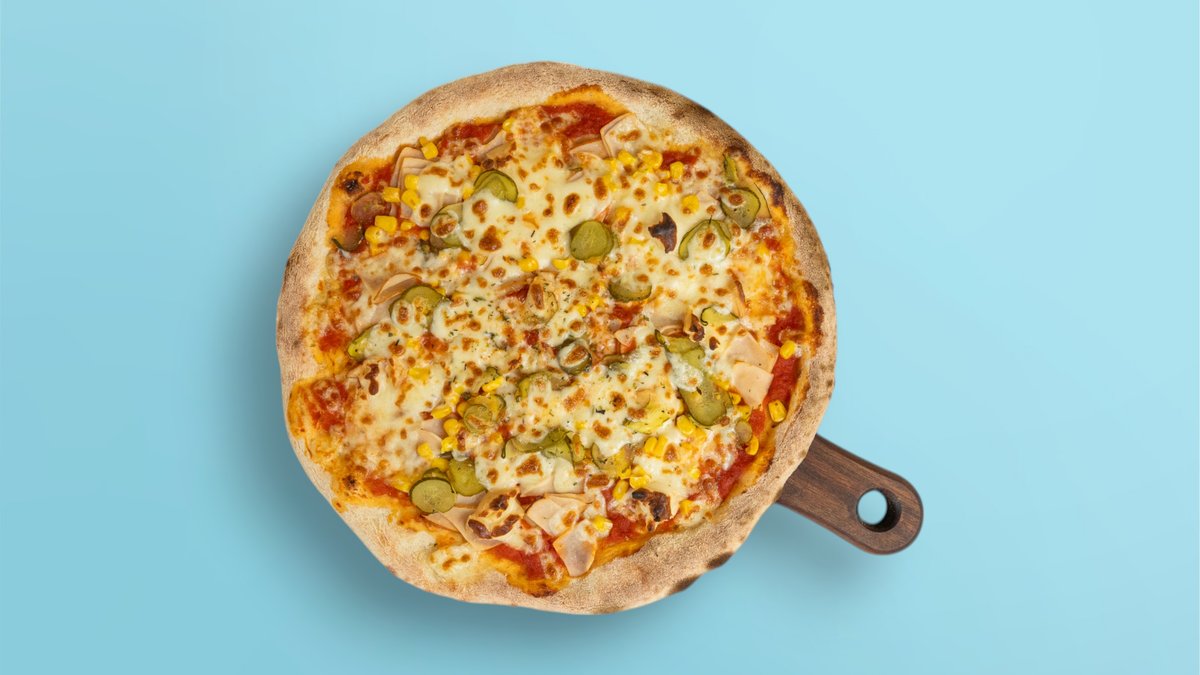 сметана, моцарела, пилешка шунка, пушено сирене, царевица, зехтин