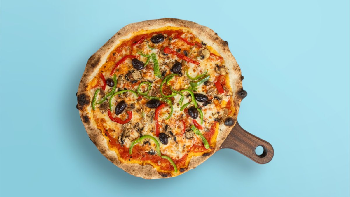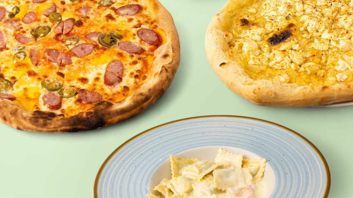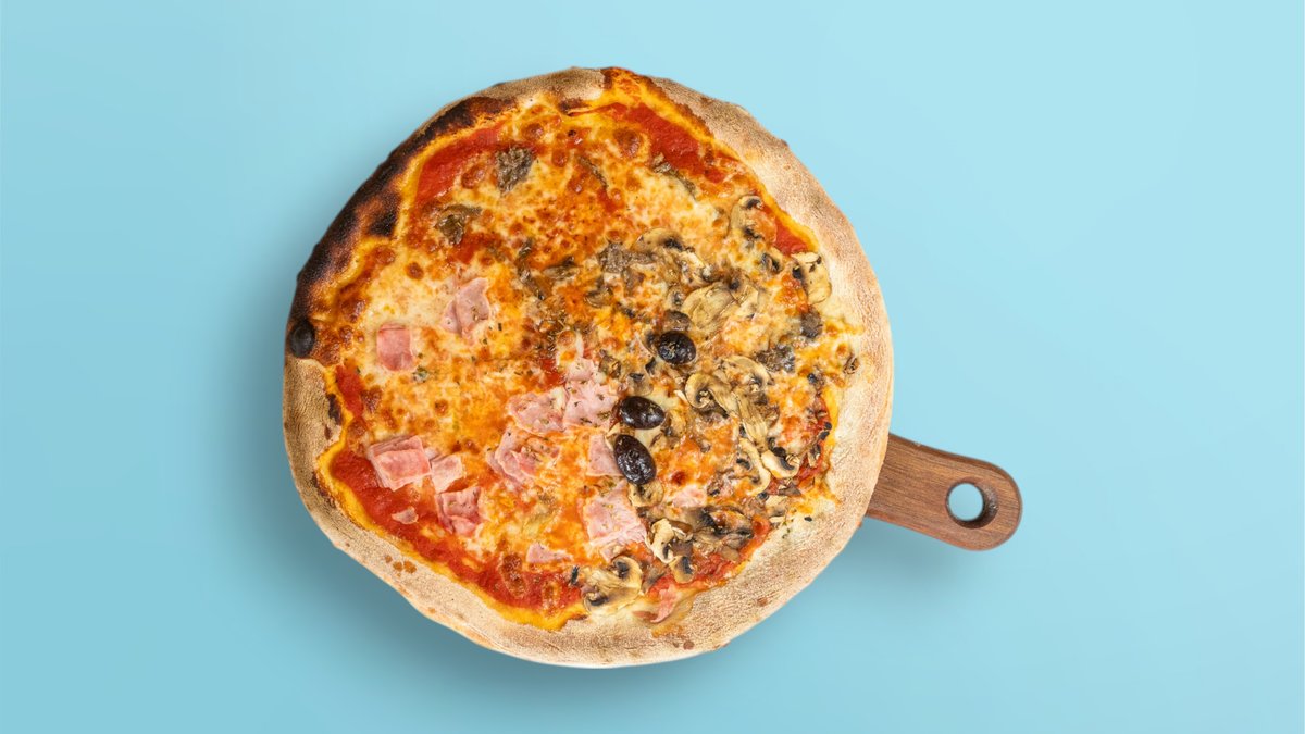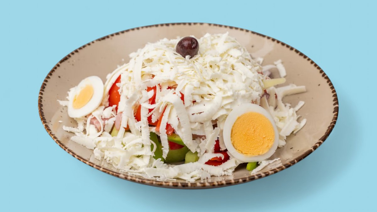 домати, краставици, лук, чушка, гъби, шунка, кашкавал, сирене, яйца, маслини