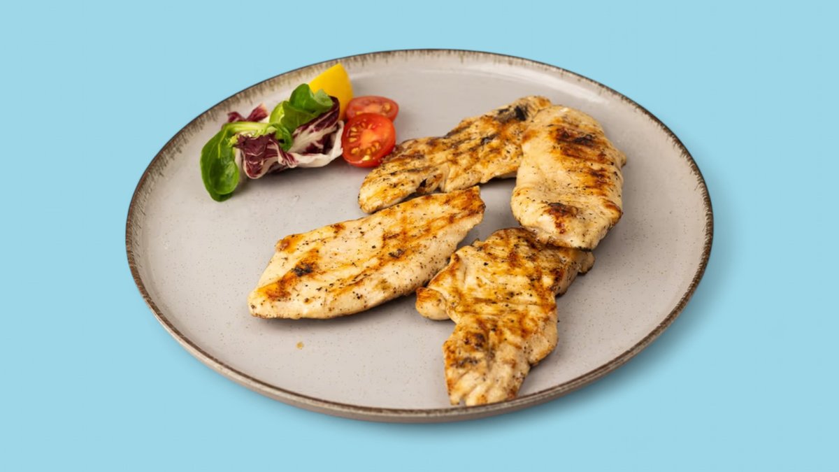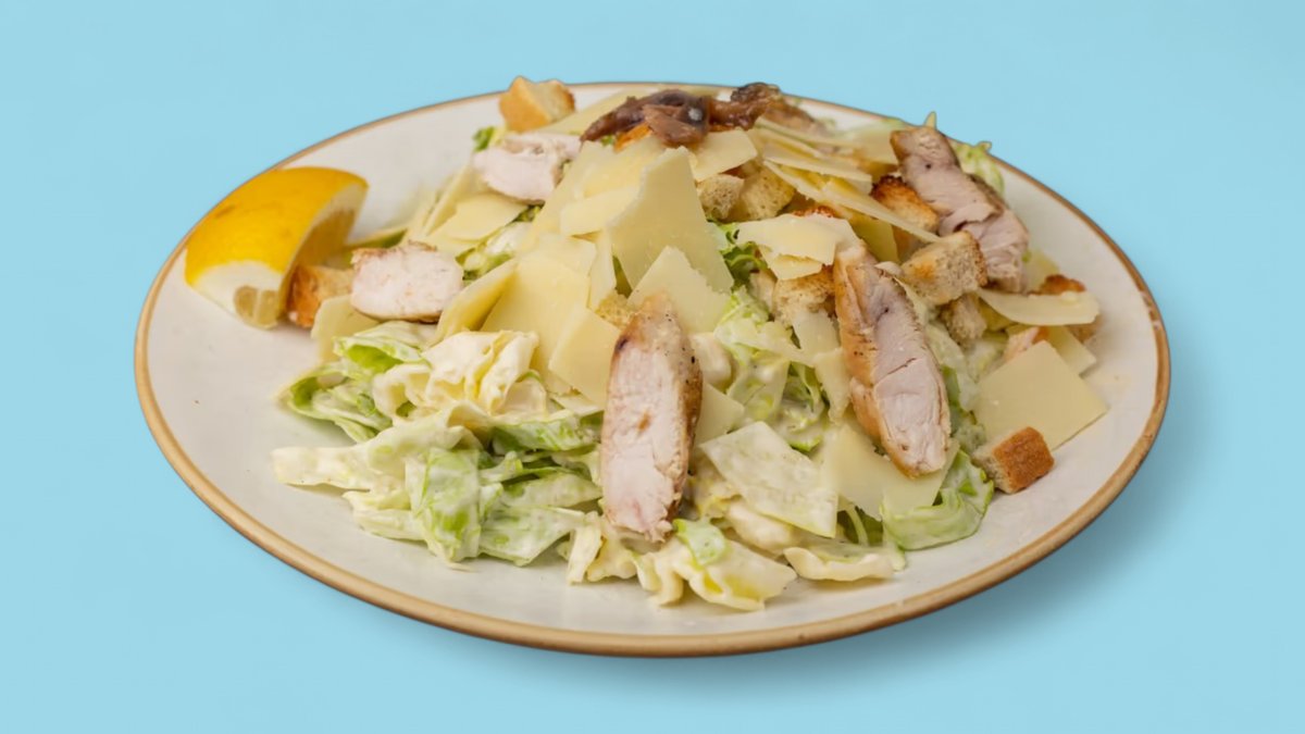 айсберг, маруля, крутони, пилешки филенца, пармезан, аншоа, чесън, сос Цезар, 400г