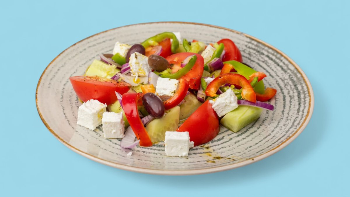 домати, краставици, лук, чушка, сирене маслини, зехтин и риган, 380г