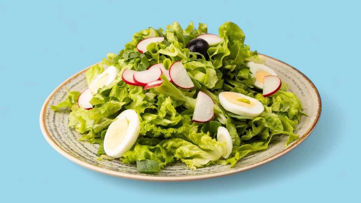марули, краставици, пресен лук, репички, маслини, яйце, 300г