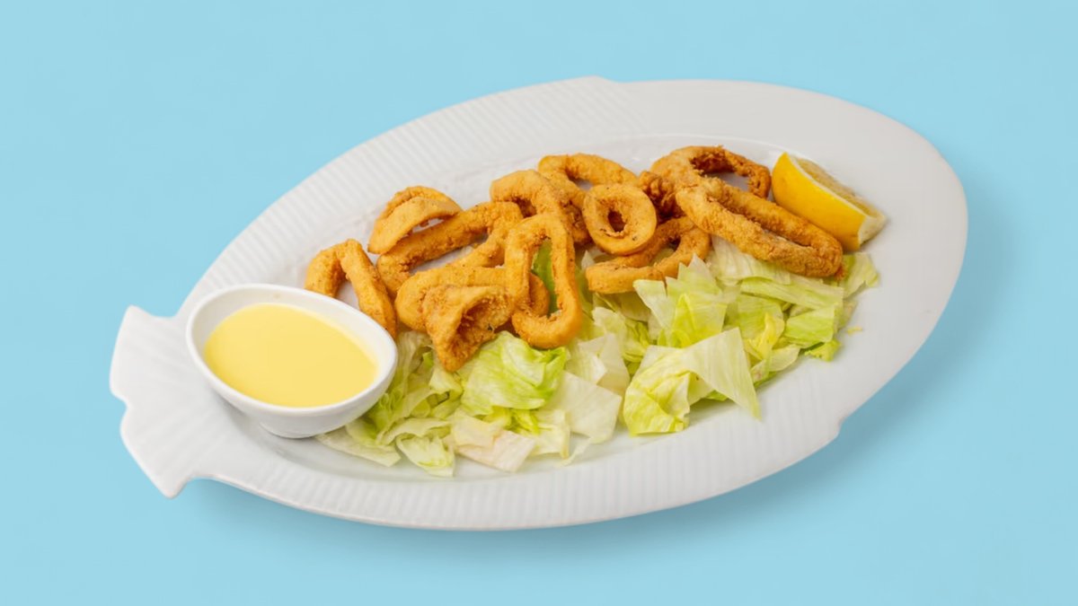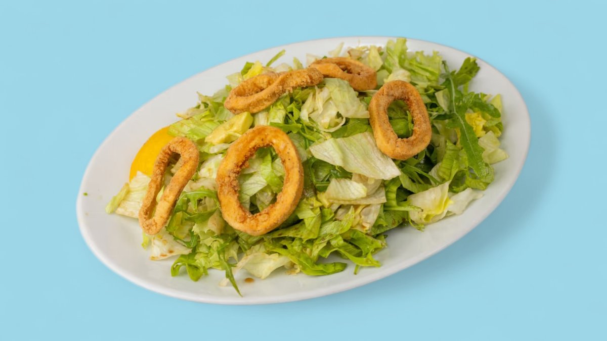 айсберг, маруля, хрупкави калмари, авокадо, рукола, дресинг, 250г