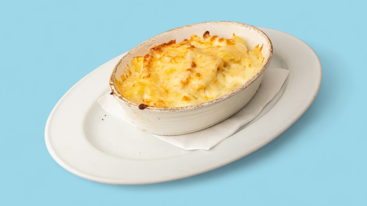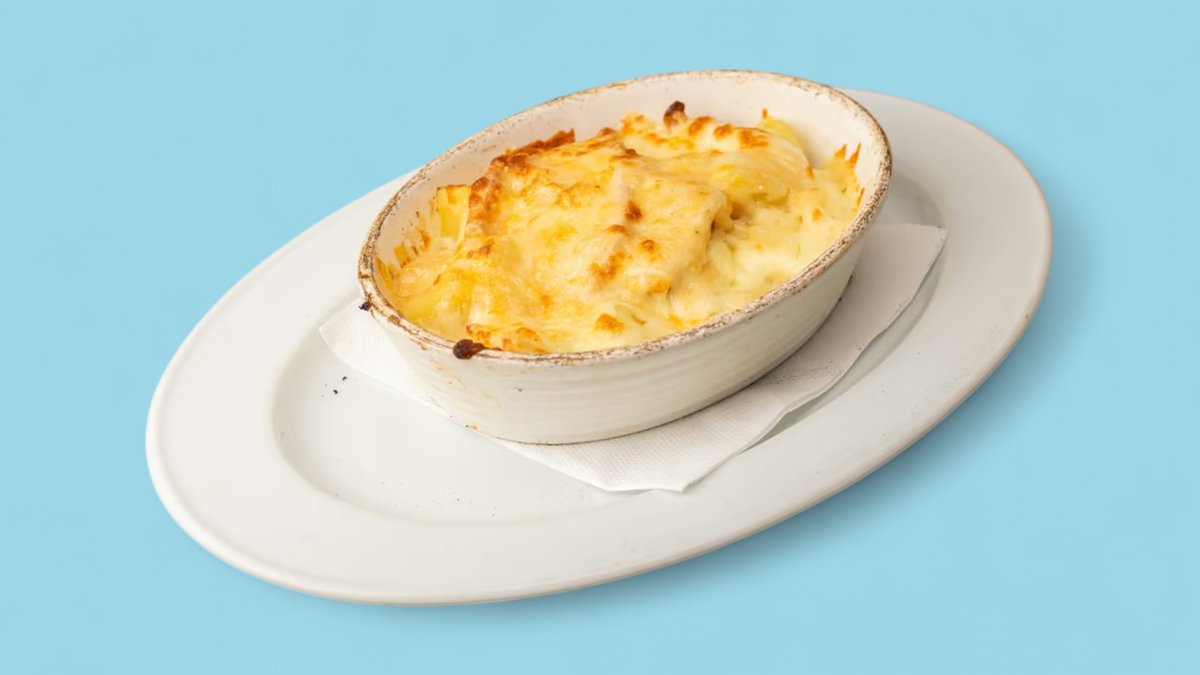 картофи, пилешко роле, топено сирене и кашкавал запечени на пещ, 400г