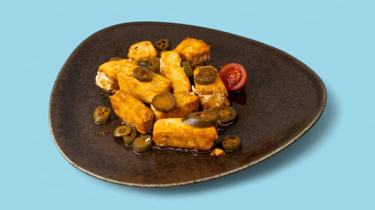 домати, печени чушки, патладжан, запечена плочка сирене, чесън, зехтин и маслини, 400г