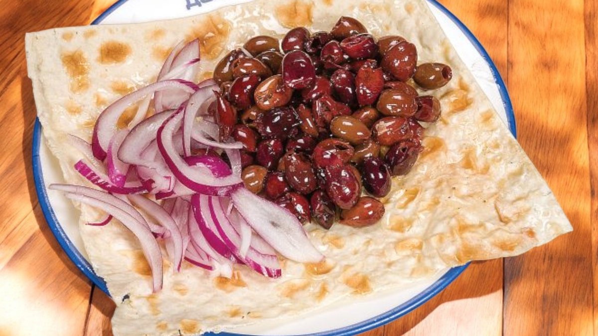 три вида разядки (катък, маслинова паста и подлютено сирене), комбинирани с домати, печени чушки, нарязан лук, прясно сирене и току-що изпечени хлебчета 400г