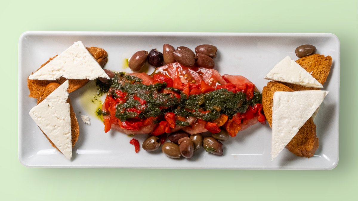 По гръцки със сирене фета, гъцко кисело мляко, люти чушлета и домашни брускети 150г