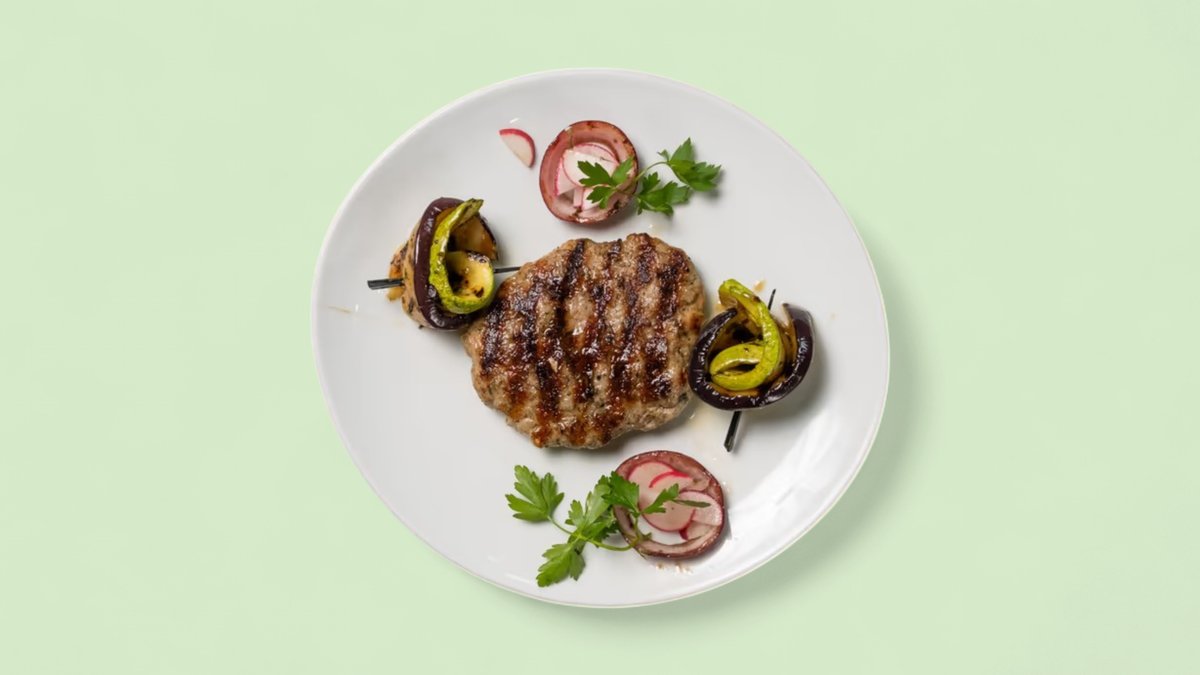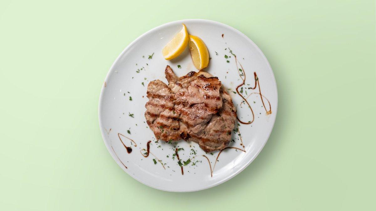 Свински каренца от бонфиле, приготвени на скара и поднесени с картофено пюре и билкова сметана, и българска крафт бира без стабилизатори и консерванти, с неповторим свеж вкус на малц и хмел