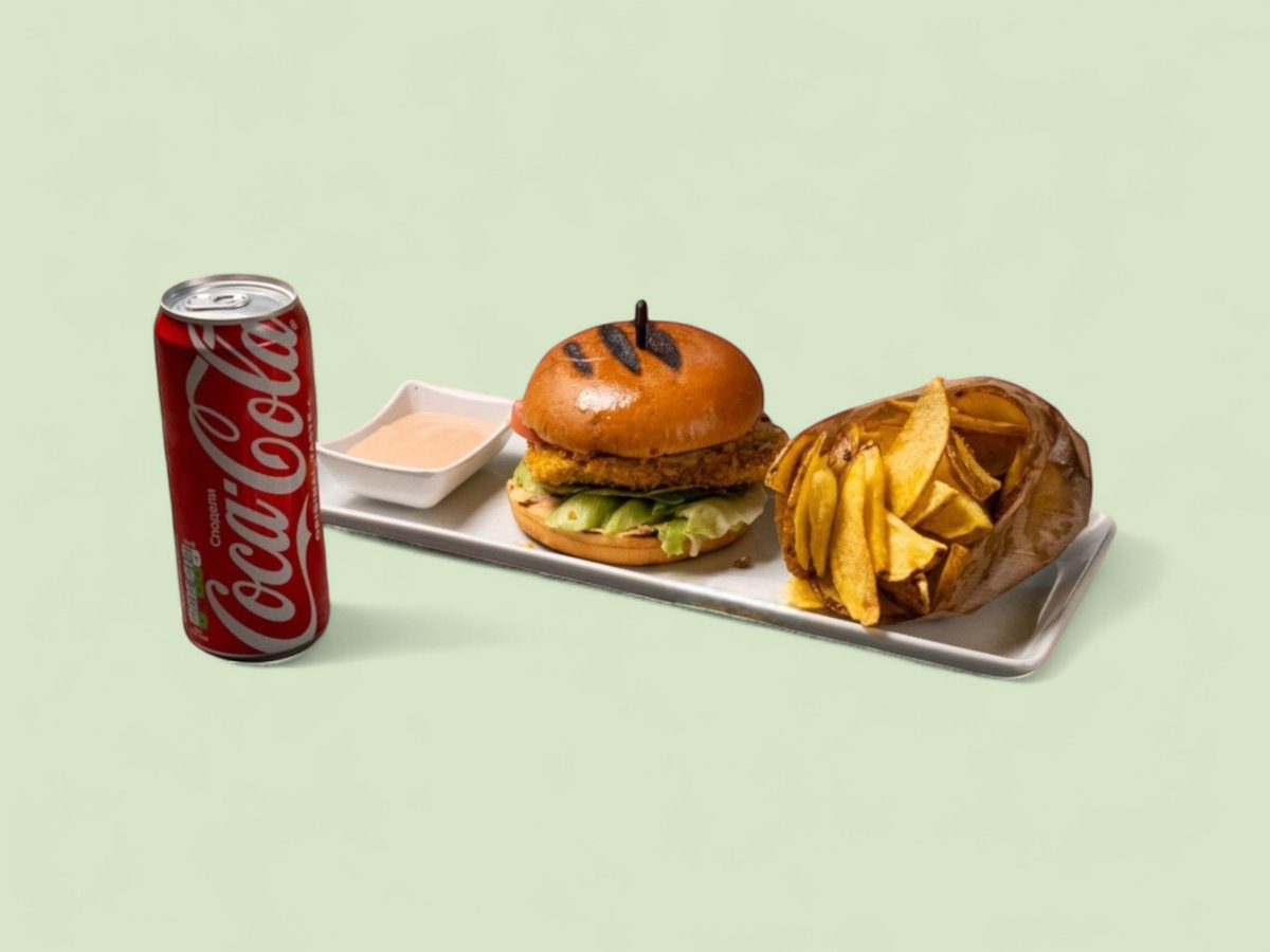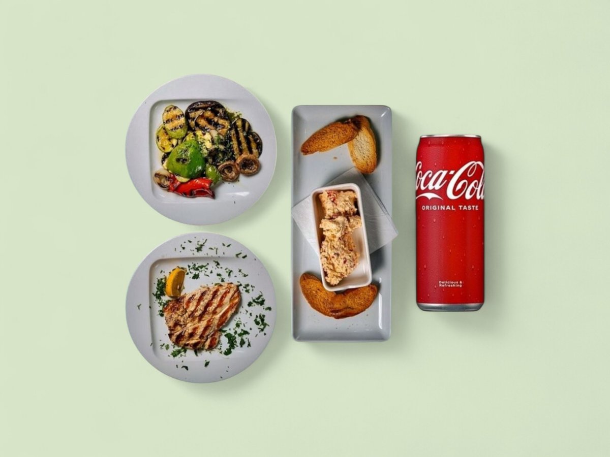 Комбо меню Пилешко филе на скара + зеленчуци на скара + урнебес + Coca-Cola 330мл