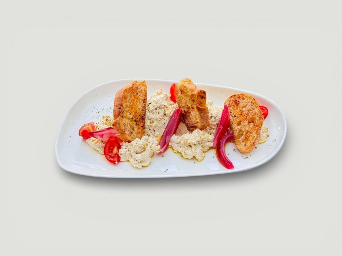 овче сирене, чили и маринован лук, поднесен с 3 бр. брускети 140г