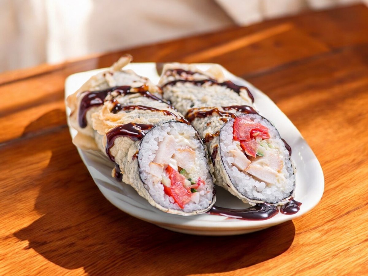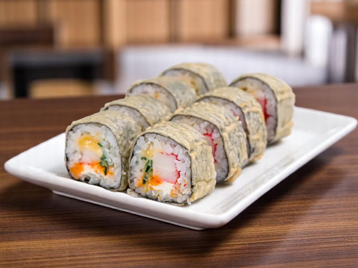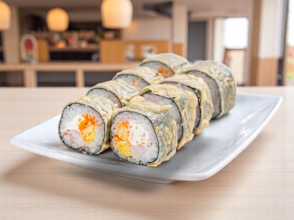 8 броя, рол с тигрови скариди, омлет, фирмена майонеза и твърдо сирене, пържен в панко галета 280г
