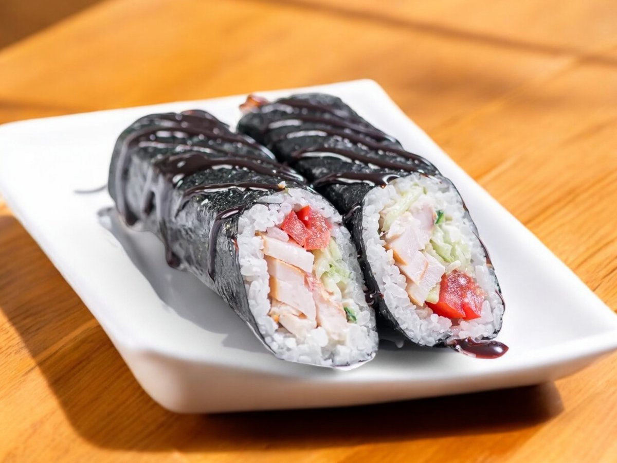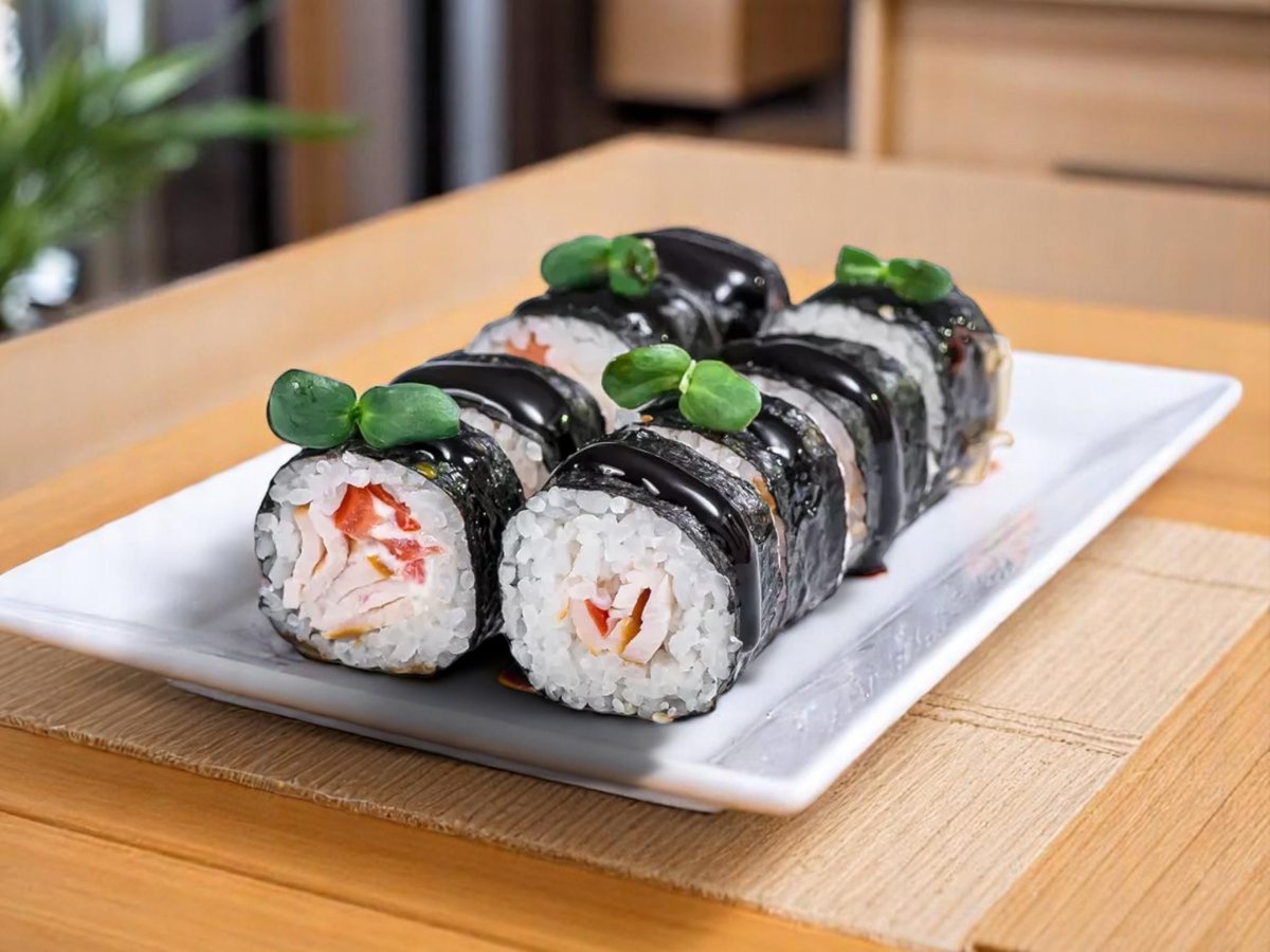 8 броя, ориз, нори, пушено пиле, майонеза, домат, сос терияки 180г