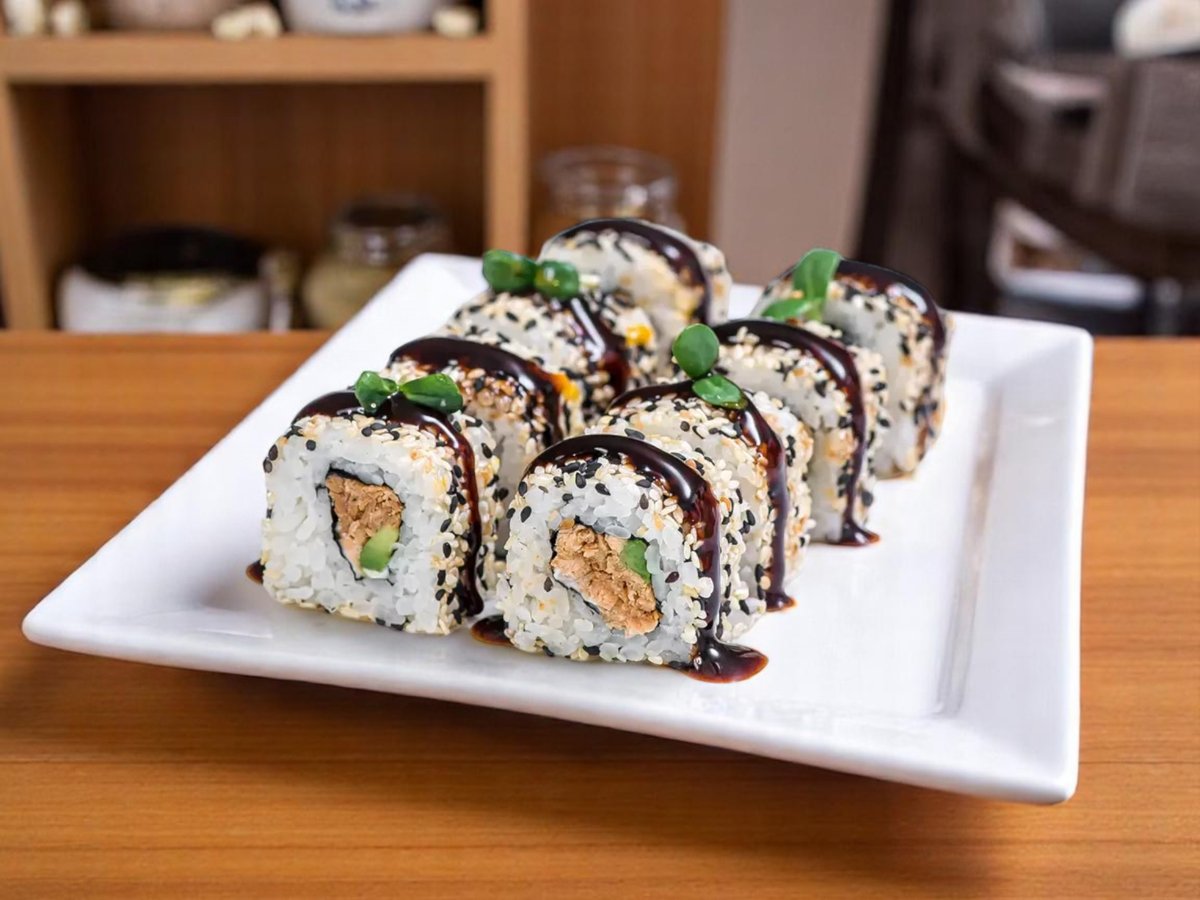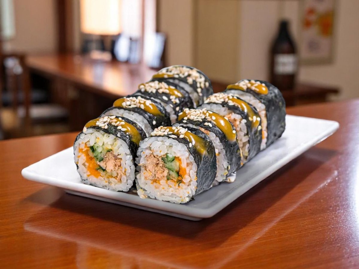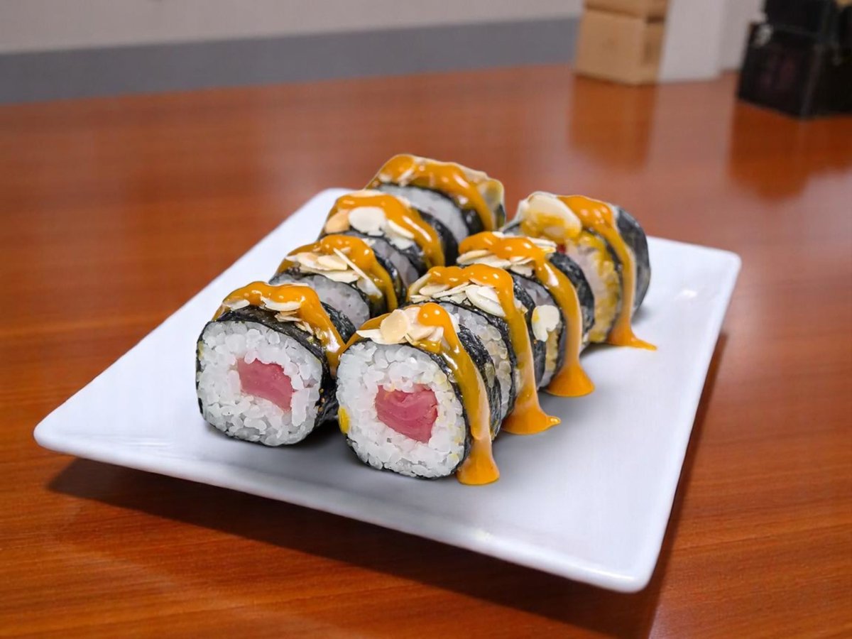 8 броя, ориз, нори, риба тон, сос от манго, бадемови люспи 140г