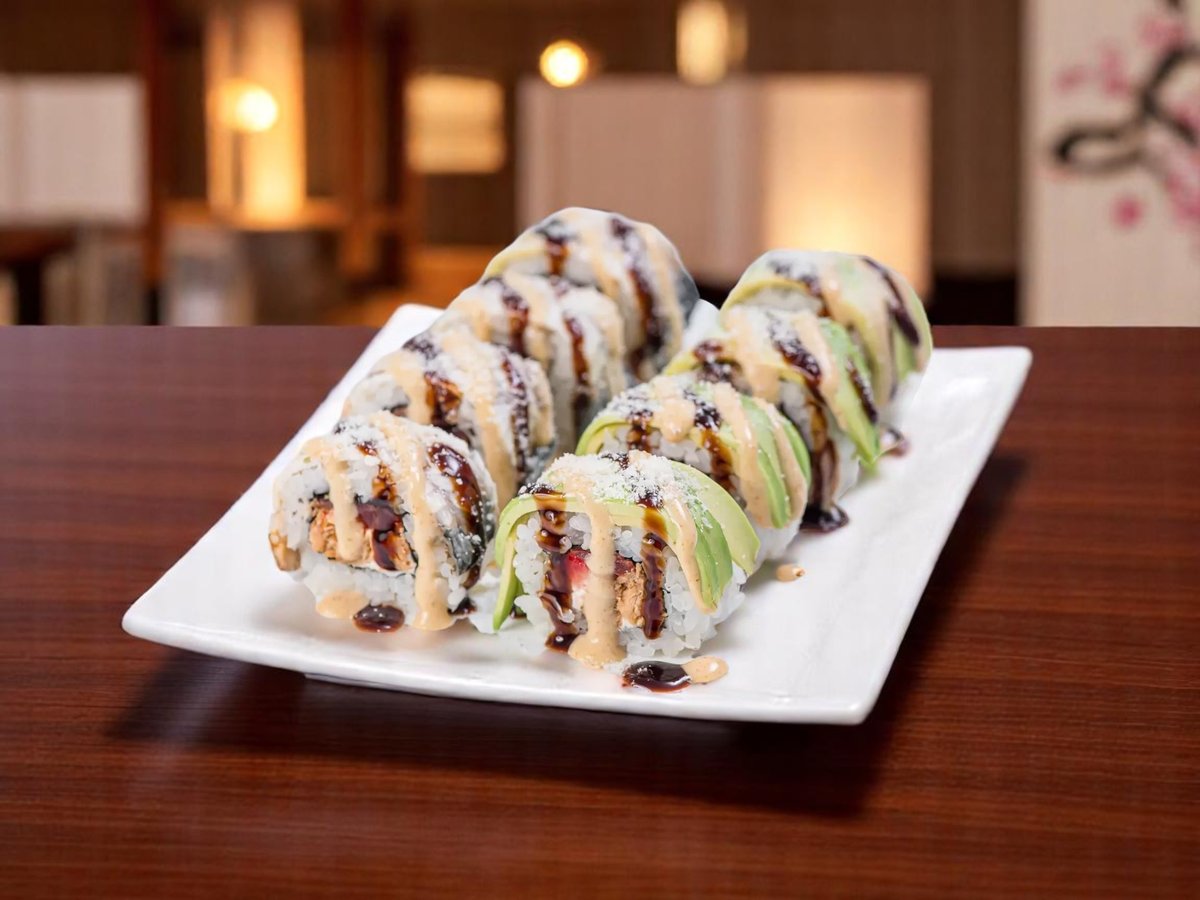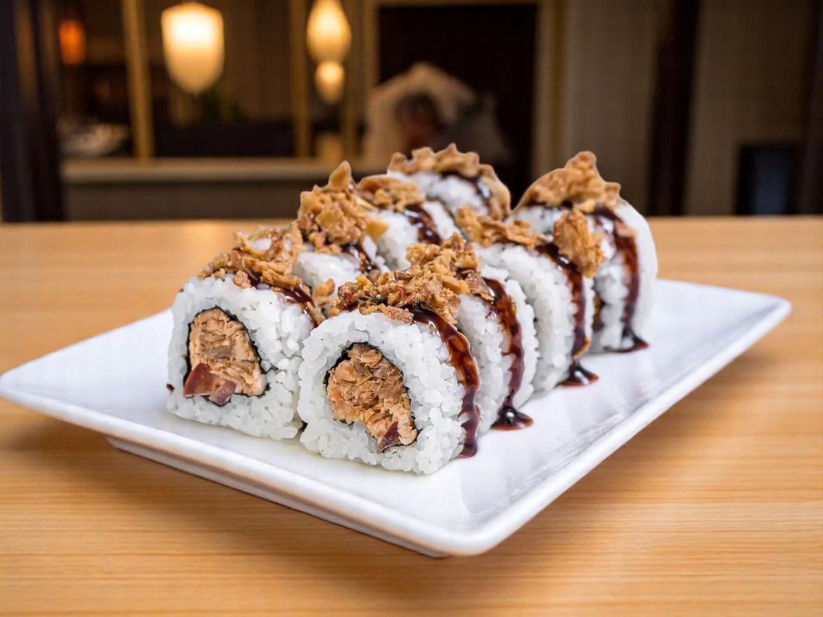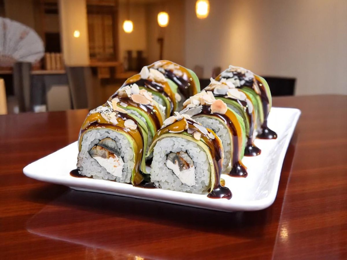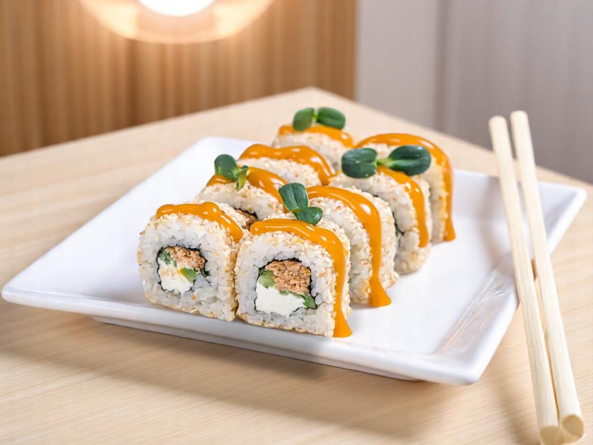 8 броя, ориз, нори, риба тон, сос от манго, бадемови люспи 140г