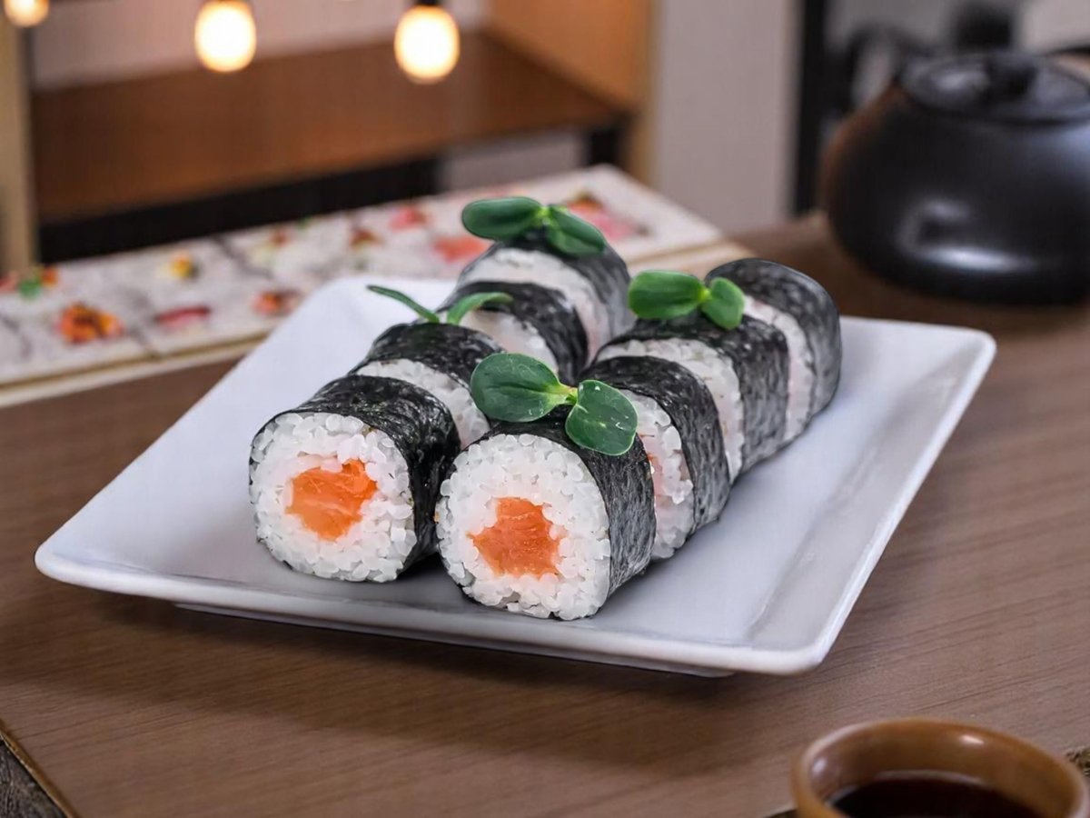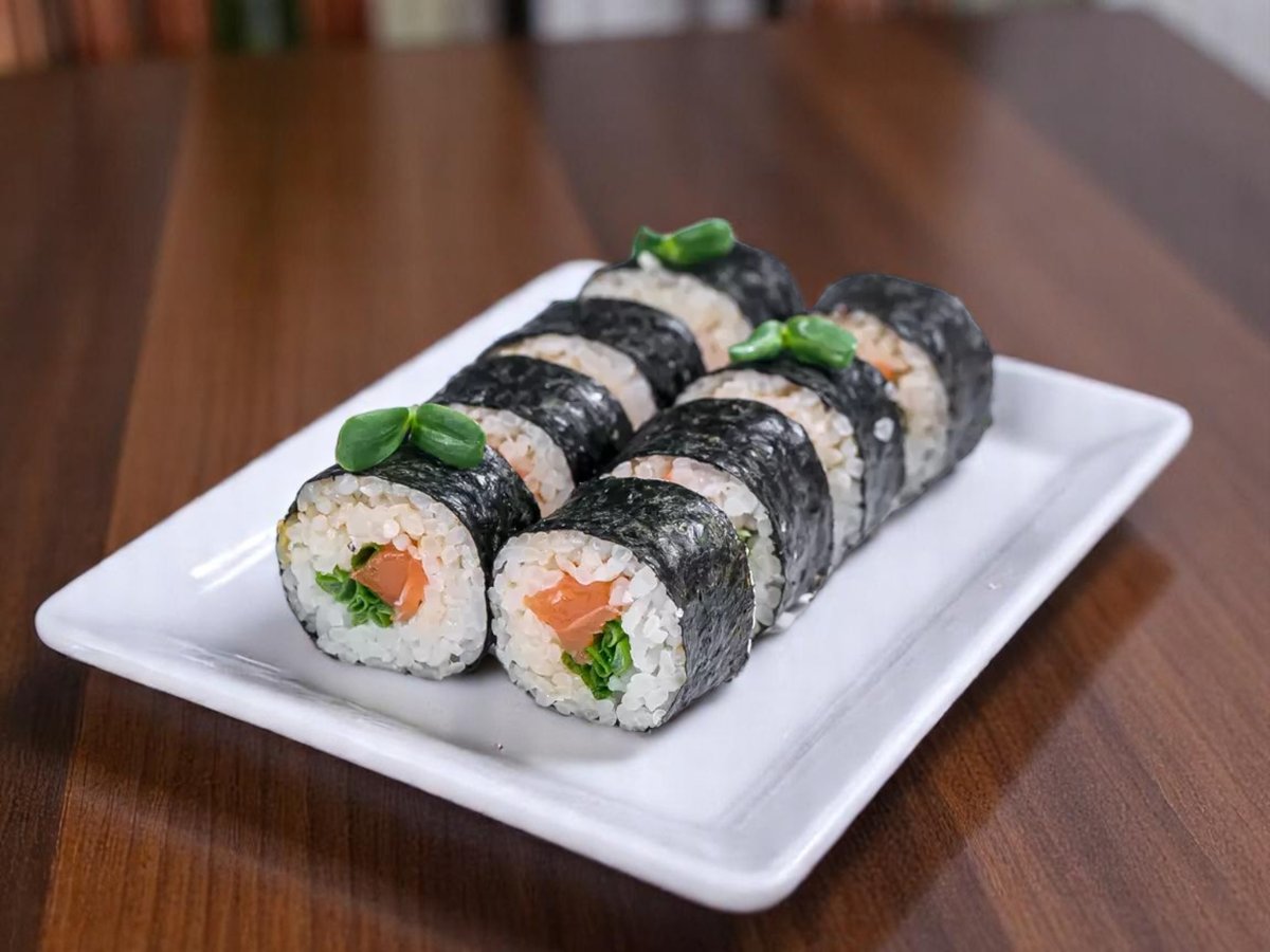 8 броя, ориз, нори, сьомга, зелен лук, пикантна майонеза 150г