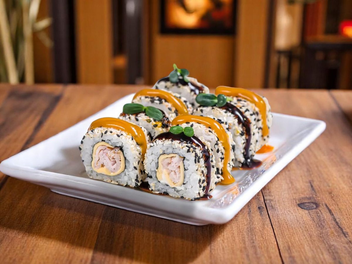 8 броя, ориз, нори, пушено пиле, топено сирене, сос терияки, сос от манго 180г