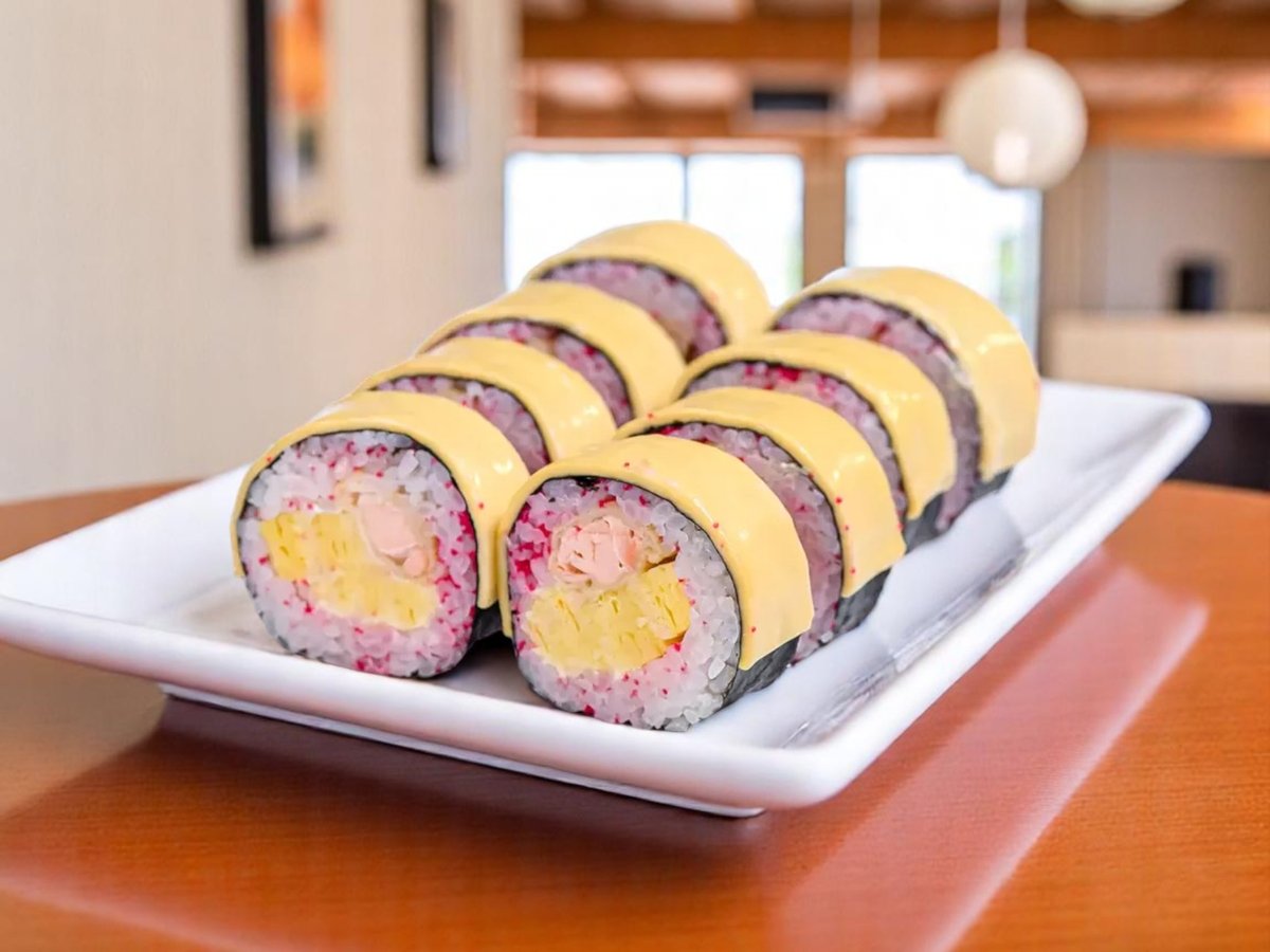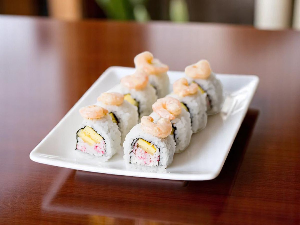 8 броя, уникално руло със cкариди отгоре на всяко парче и деликатен пълнеж от японски омлет томаго и снежен рак 220г