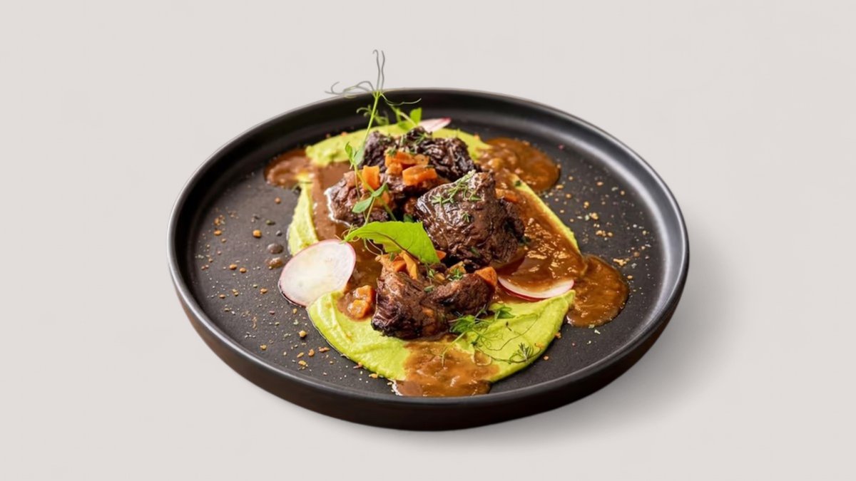 Дърпано Телешко с картофено пюре и печен сос
