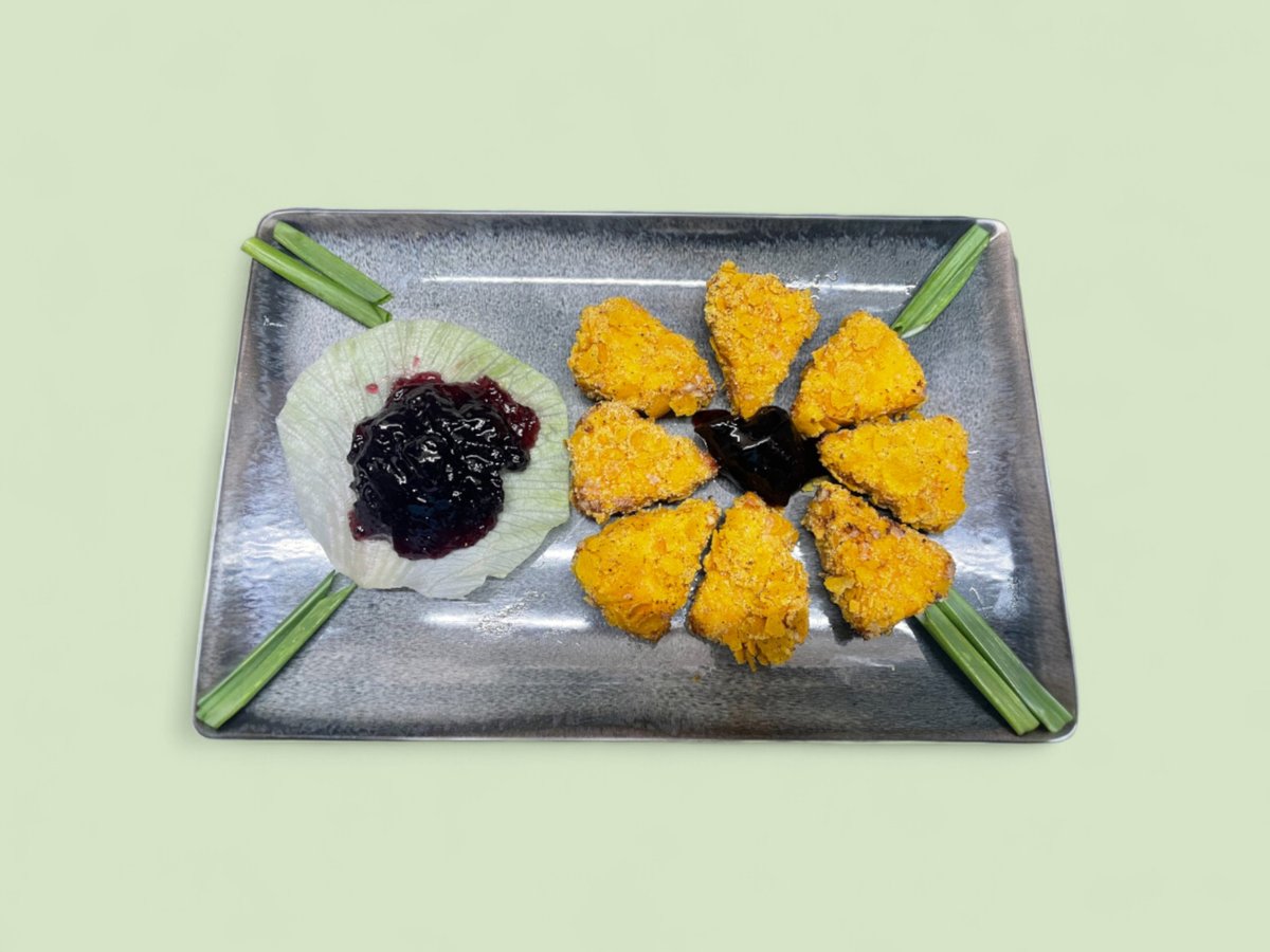 Топени сиренца в корнфлейкс със сладко от боровинки