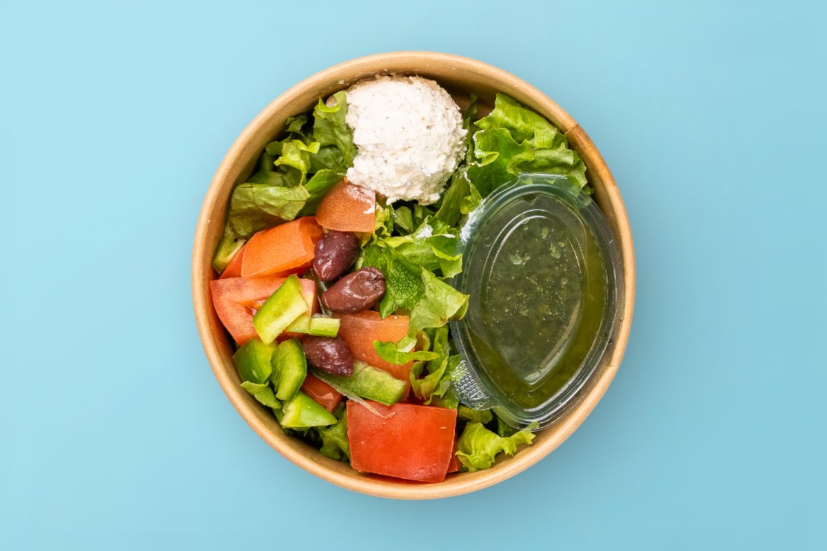 зелена салата, чушки, краставици, домат, маслини, крема сирене, бодилеково песто 0.250г