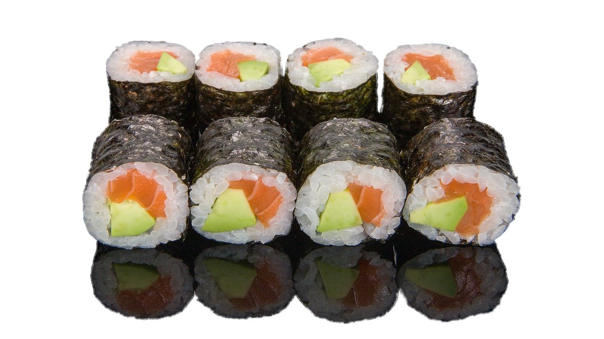 сварен ориз, сьомга, авокадо, нори 115г, 8 броя