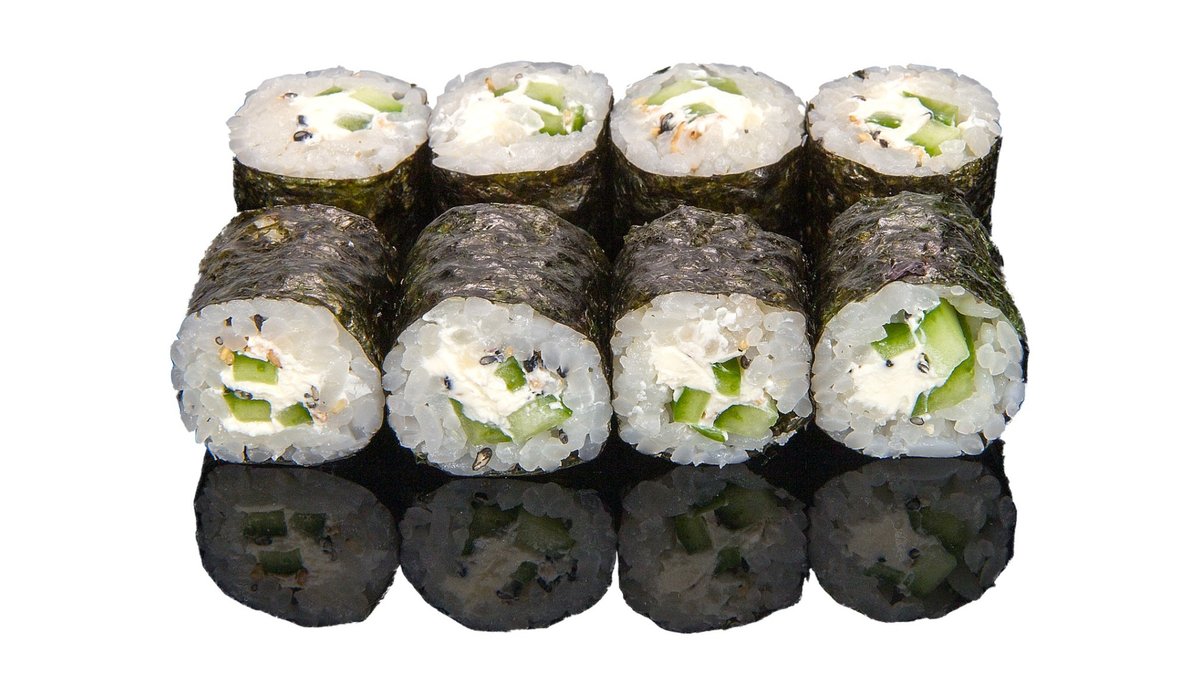 сварен ориз, краставица, нори, сусам, Филаделфия 110г, 8 броя