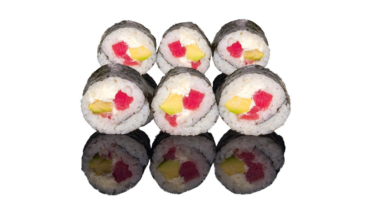 сварен ориз, тон, авокадо, Филаделфия, нори 165г, 6 броя
