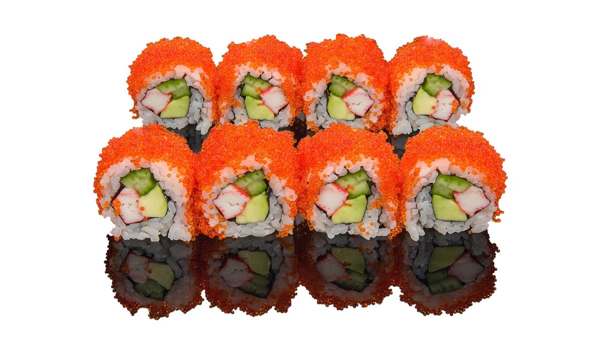 сварен ориз, краставица, нори, авокадо, тобико, сурими 190г, 8 броя
