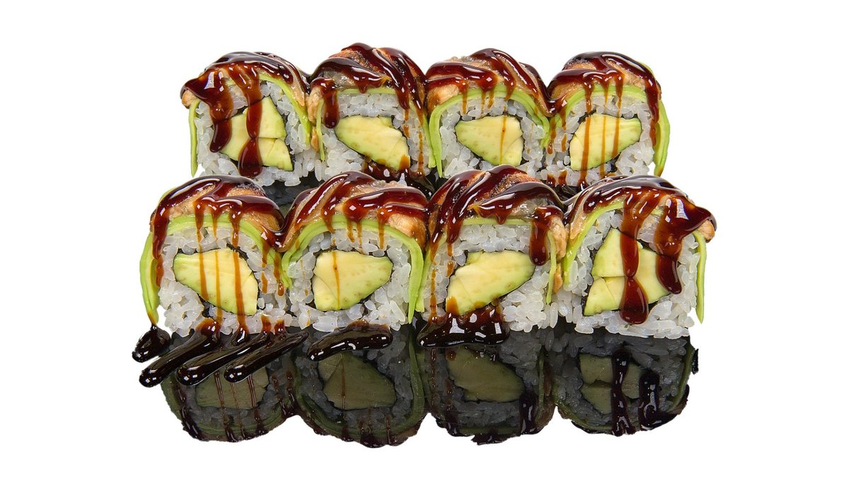 сварен ориз, змиорка, нори, авокадо, унаги сос 290г, 8 броя