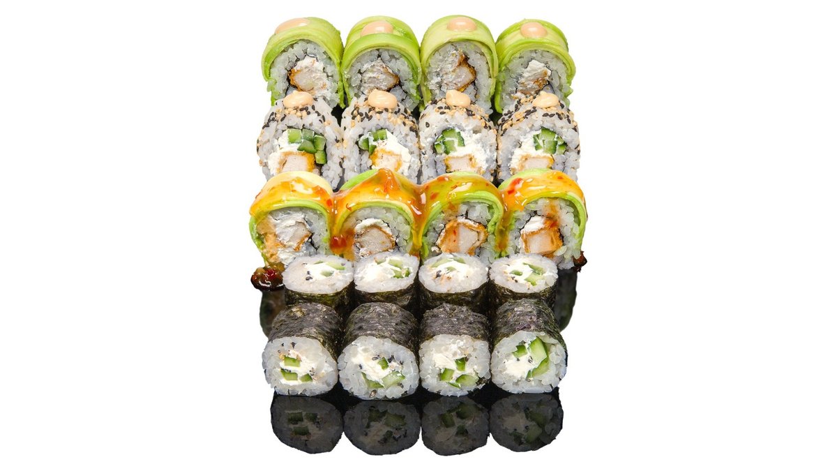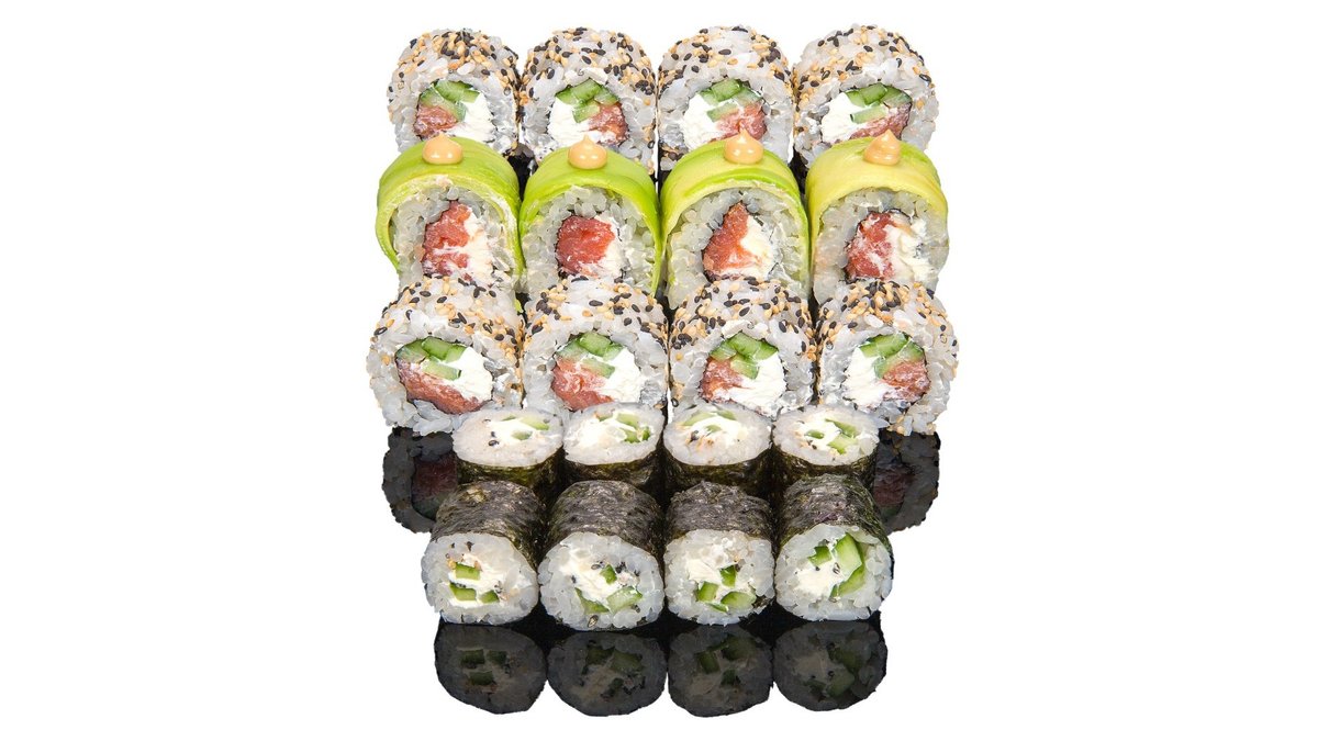 сварен ориз, тон, авокадо, Филаделфия, нори, краставица, манго, тобико 320г, 24 броя