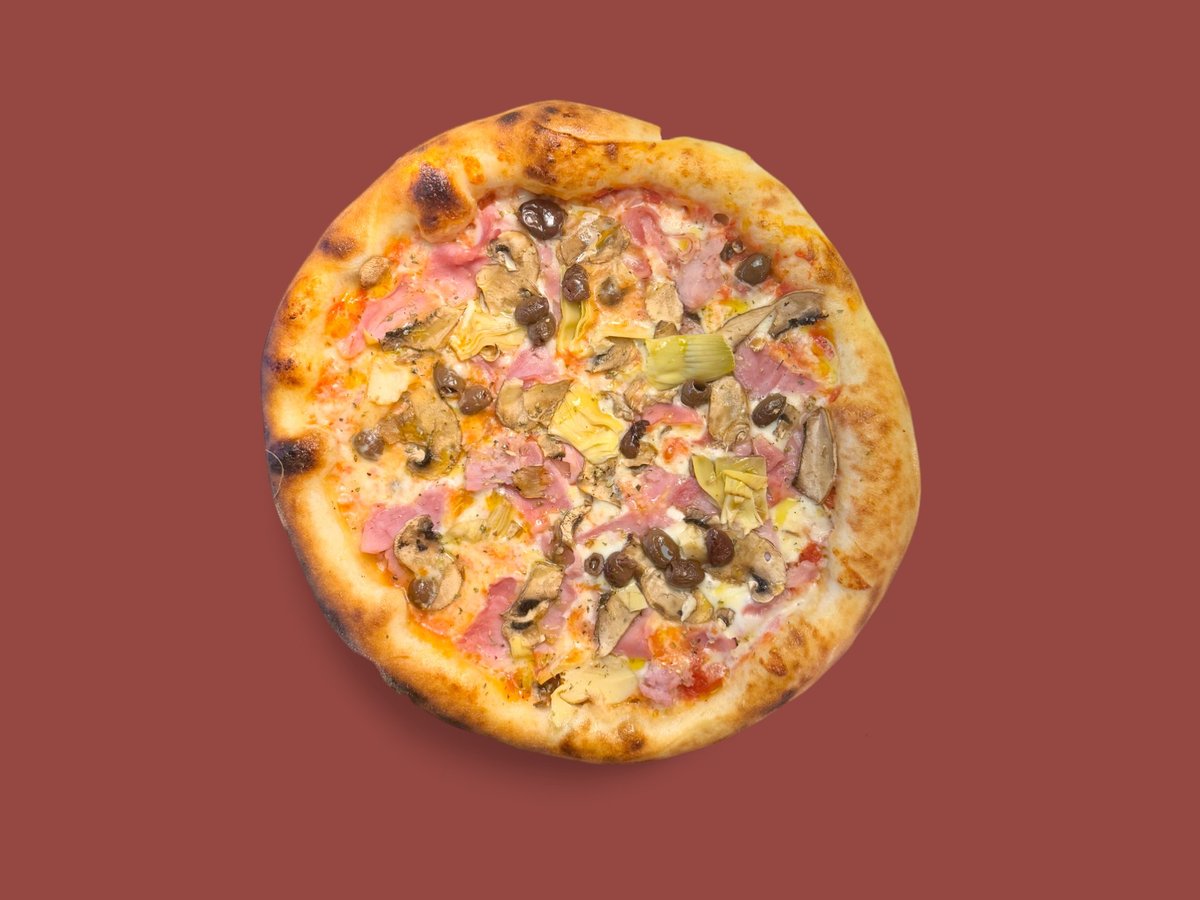доматен сос, моцарела, прошуто Котто, гъби печурки, маслини Лечино, артишок 550г
