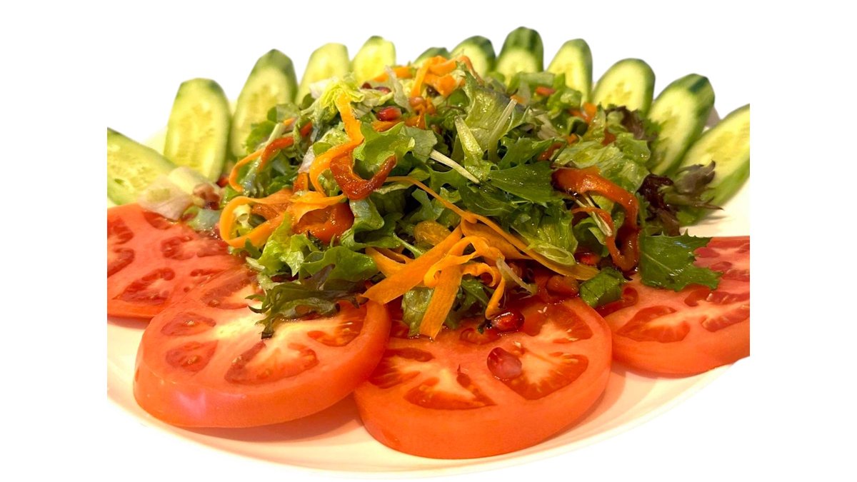 Домат, краставица, зелена салата микс, печена чушка, нар 500г
