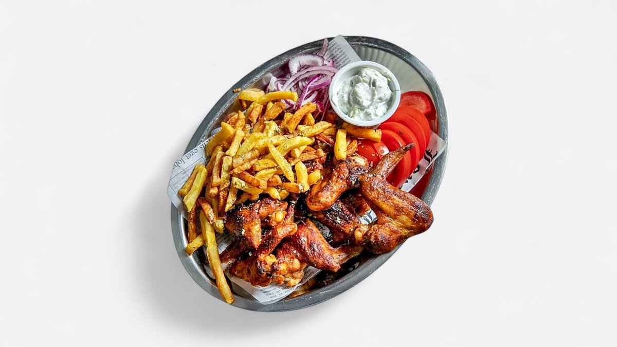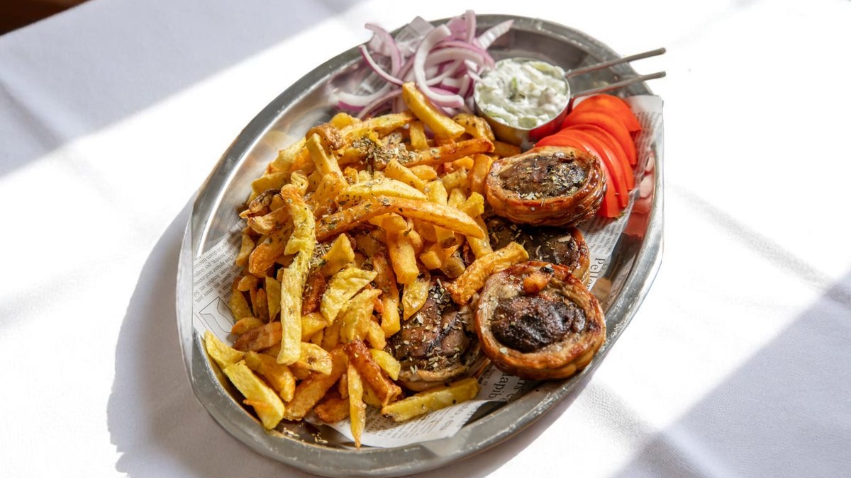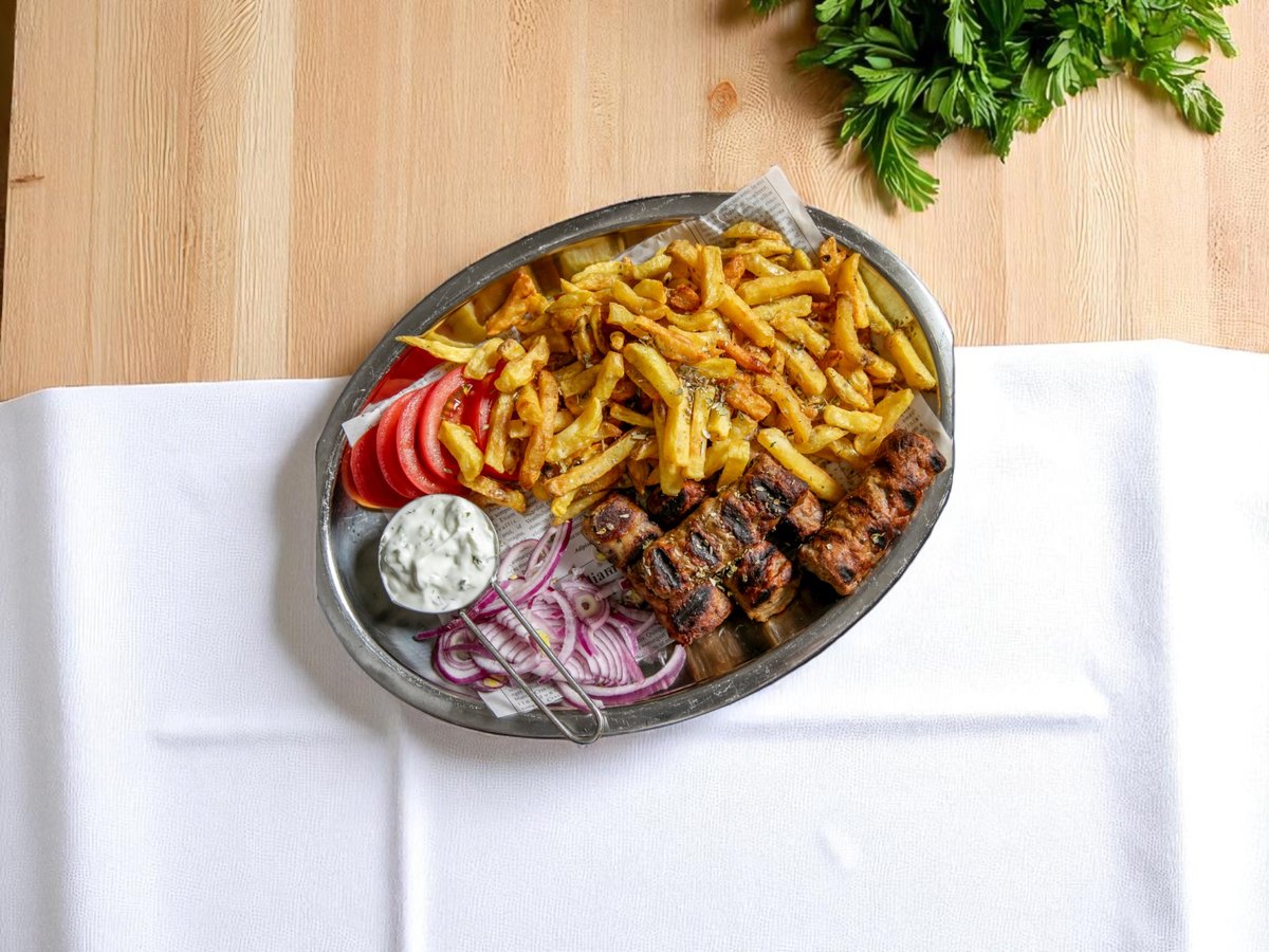 100 % месо/свинско, телешко, овче 5бр с гарнитура картофи, лук, дзадзики, домат 400г